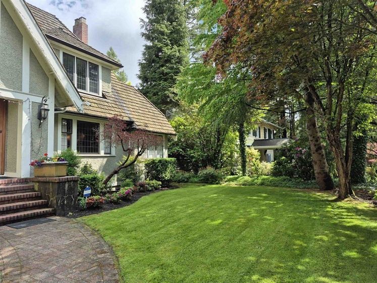 This luminous and expansive heritage residence in Shaughnessy boasts over 5,300 square feet of opulent living space. Nestled on a serene, picturesque street, the 75x136-foot property features a secluded, meticulously landscaped garden complete with a hot tub. The gourmet kitchen showcases a sizable island, top-tier Miele, Wolf, and Sub-Zero stainless steel appliances, and a wine cooler. The home offers five generously proportioned bedrooms upstairs, a main-floor den, and an additional bedroom below. The primary bedroom impresses with a stunning ensuite featuring a steam shower and a walk-in closet.