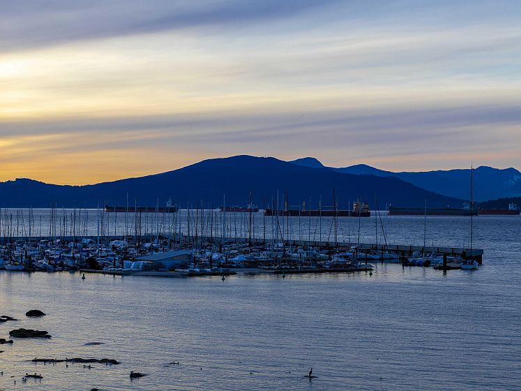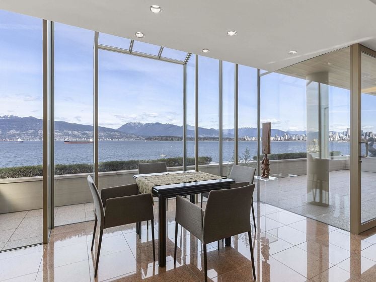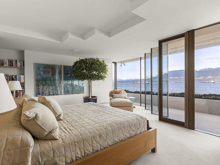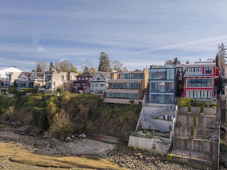 Envisioned as a striking coastal retreat, this architecturally refined waterfront residence offers a sophisticated take on West Coast living. Set on a rare 49.5’ x 160’ lot along coveted Point Grey Road. Thoughtfully transformed by Dan White, this 5,152 sqft. home showcases a seamless balance of artistry and livability, where every element has been carefully curated. A dramatic feature staircase rises as a central design moment, guiding you through expansive interiors defined by openness & light. A refined material palette creates a polished, contemporary feel throughout. Expansive windows capture uninterrupted vistas of the ocean, mountains, & city skyline. Sunlight pours through the open-plan living spaces, enhancing the home’s bright, airy ambiance. Double garage+ front driveway parking