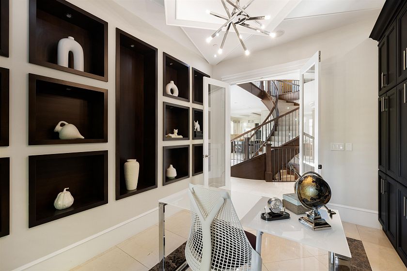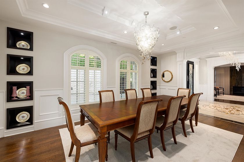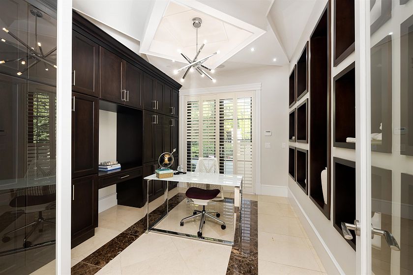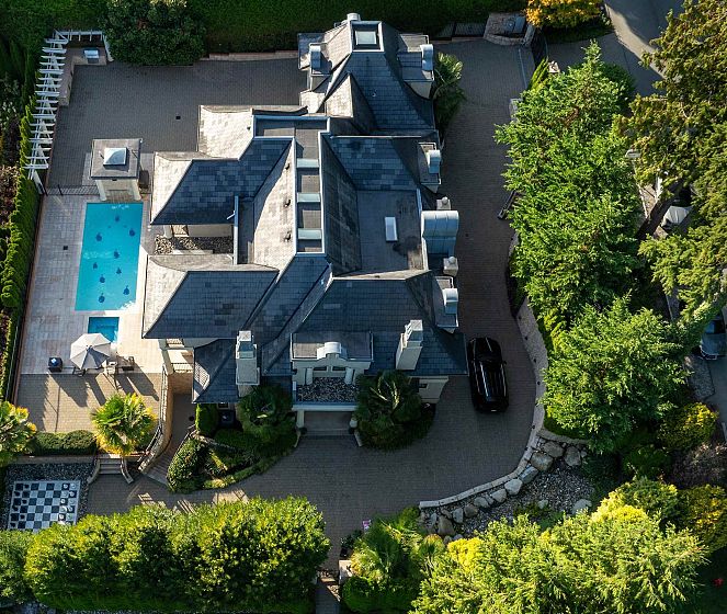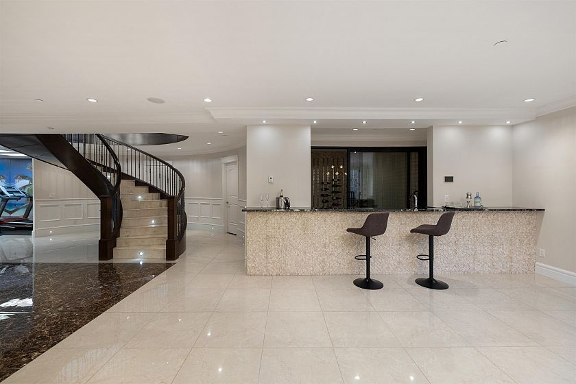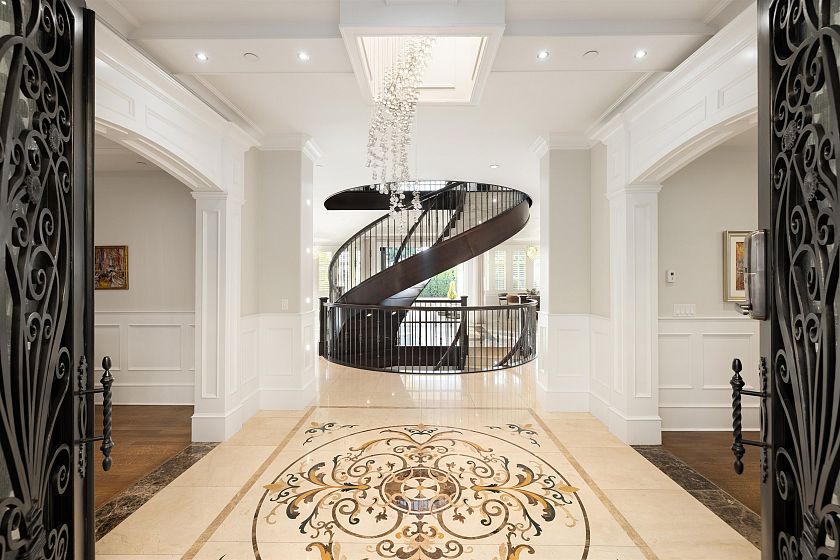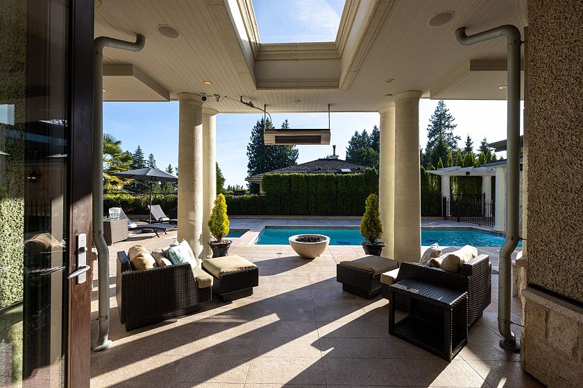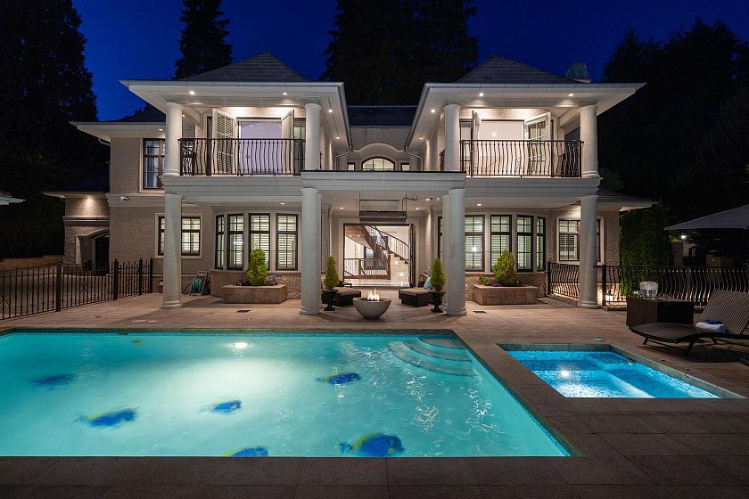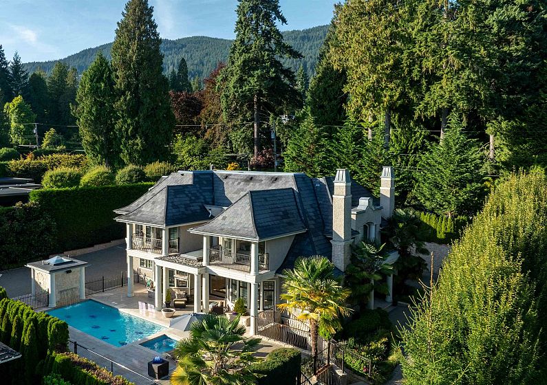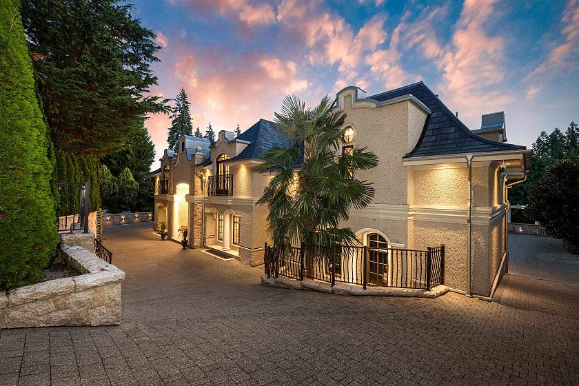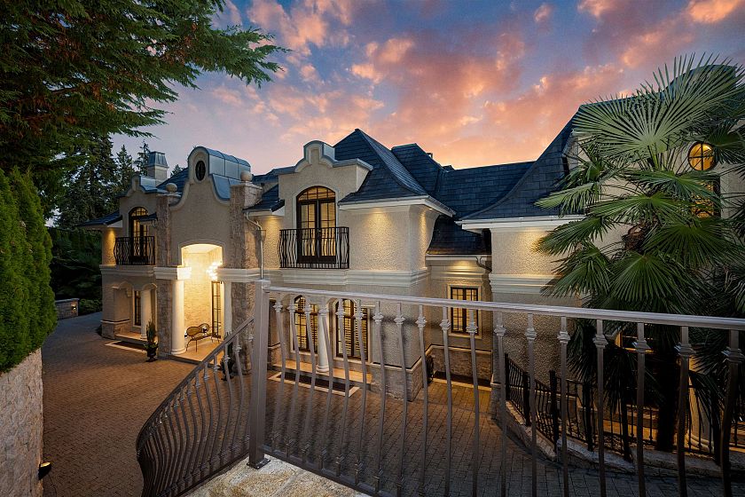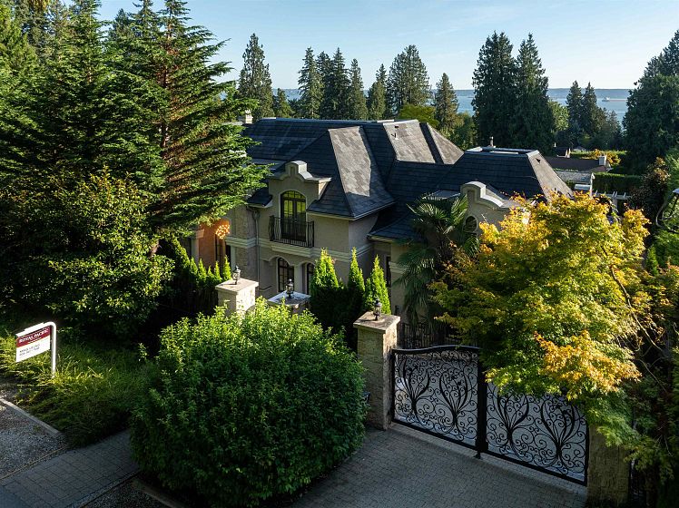Magnificent European Chateau in Prestigious Altamont. A Marque Thompson-designed gated estate, this 7-bedroom, 8-bath residence blends European elegance with modern sophistication. Grand formal rooms, soaring ceilings & a handcrafted marble staircase set an opulent tone. The chef's kitchen with Sub-Zero, Wolf & Miele appliances plus WOK kitchen opens to a resort-style backyard with swimming pool, Jacuzzi, firepit & pavilion. Upstairs, the primary suite is a spa retreat, with marble finishes, rain shower, freestanding tub & boutique-style walk-in. The lower level features a theatre, wine cellar, gym, sauna & nanny quarters. Enhanced with smart automation, radiant heating & biometric security, this estate defines luxury living in one of West Vancouver's most prestigious enclaves.