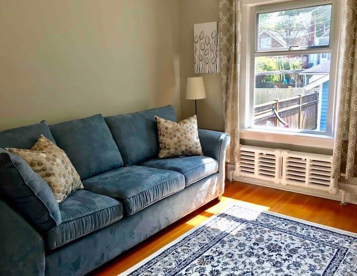 Family-friendly fully furnished 4-bedroom, 2-bath home in Vancouver’s sought-after Dunbar/Point Grey/Kitsilano neighbourhood, minutes from UBC. This charming character house offers stunning views of the water, downtown, and mountains. Open-concept main floor with living, dining, and a spacious fully equipped kitchen, plus a bedroom with sofa bed. Upstairs features 3 bedrooms and a fully renovated bathroom with walk-in shower. Laundry in basement. Fully fenced private back yard. Close to beaches, UBC, downtown, transit, and airport. School catchments: Lord Byng High and Kitchener elementary. $6,250 per month plus utilities Fixed-term lease: September 1, 2026 to June, July, or August 2027. Start date is firm; tenancy must end no later than August 31, 2027 (owners returning from sabbatical).