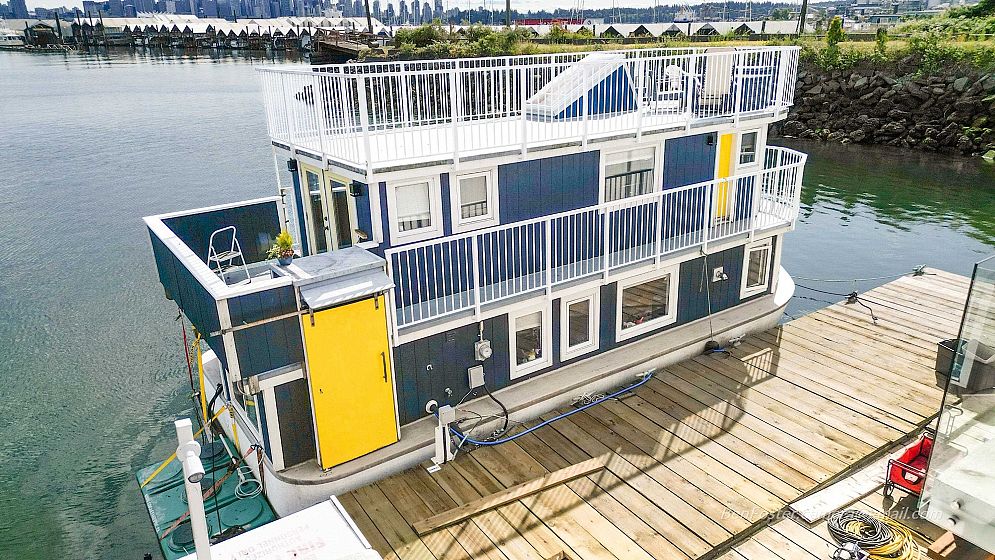 Cozy and comfy one and den floathome featuring spectacular roof top deck...see downtown Vancouver to the south and sunsets over lions gate bridge to the west. Unique curved design features windows all around the living room and den maximizing the sunlight streaming in. Stainless steel countertops keep the bathroom and kitchen looking sleek and modern. A custom ironwork railing highlights the top of the stairs to bedroom and den. Hydraulic pull down stairs access the roof top deck and it's amazing panoramic views of the city and ocean. Seller will carry a mortgage with good down payment. Excellent mo to mo tenant in place. Shops, pubs, restaurants all within 5 min walking distance.
