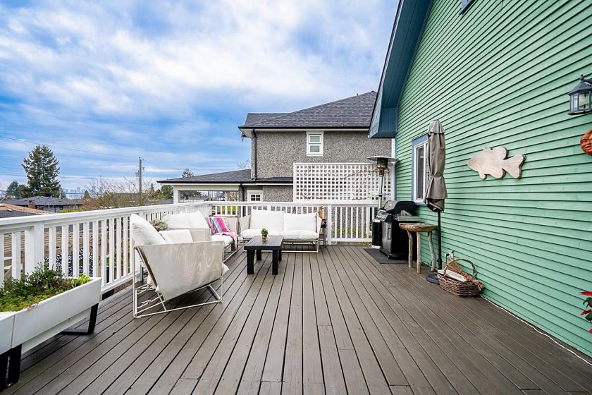 Featured on LOVE IT OR LIST IT VANCOUVER and in Style at Home, this beautifully updated character home blends timeless charm with modern upgrades in sought-after Central Lonsdale. Offering three finished levels, including a bright open-concept main floor with updated chef’s kitchen, quartz counters and premium appliances, two gas fireplaces, and seamless indoor-outdoor living to a large south-facing deck with city views. Upstairs includes two spacious bedrooms plus a skylit office nook, while the fully finished basement with separate entry, new bathroom, and kitchen rough-ins offer suite potential. The private backyard is a rare retreat with mature fruit trees, vegetable garden, pergola, and hot tub. High efficiency Furnace and On-demand H/W. Quiet Street. Wed, 10am-12, SAT 2-4pm.