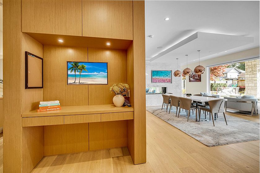 DREAM HOME One-of-a-kind luxury custom home by Sprucehill on a bright, private corner lot minutes from Edgemont Village. This stunning residence showcases custom millwork, limestone exterior, floating stairs, and top-tier finishings throughout. Main floor features formal living/dining with exposed glass fireplace, Miele kitchen+ wok kitchen, office, mudroom, a heated covered terrace that opens to a sunny flat backyard- ideal for indoor-outdoor entertaining and playground for the kids . Upstairs boasts 4 spacious bedrooms , including a 5-star primary suite . Downstairs offers a media room, rec room with bar & wine display, plus a legal 1-bed suite private access from the side The home features all the bells & whistles including A/C, HRV, radiant heat, back up generator, fire pit & more!