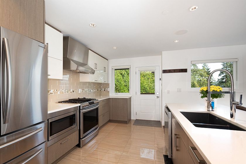 Amazing views; better than a new house! Welcome to this spectacular, custom-built home. Hidden up off the road,steps to the marina, this home has ALL the extras. Drive up to your gated property and enjoy ocean/mountain views to the front; exclusive Quarry Rock trail access in back. Multi-level home w/ luxurious finishes and windows everywhere. High and bright open plan, w/ 3 bedrooms + den (4th bedroom?) up; suite and beautiful rec room down. Rare extras include A/C, auto blinds, smart lights/sound. Decks everywhere to enjoy the amazing sunny south facing outlook. Tons of parking; EV charger; workshop; lots of storage. Don't like stairs? Get out of your car and hop into the elevator. So many extras; too many to list. Walk to shops, restaurants, schools. Open House:12:30-02:00 PM,Sat,Apr18