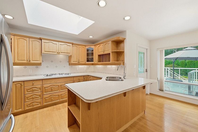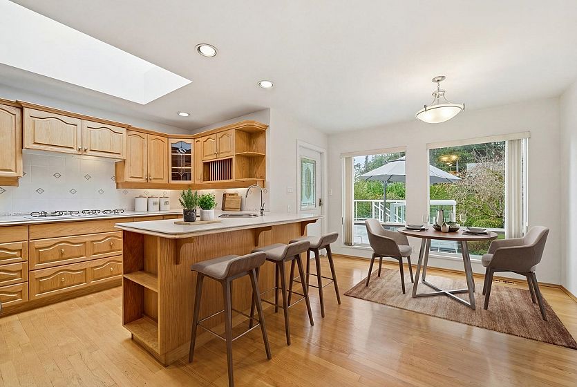 Welcome to this Custom Built, One Owner home in the Heart of Blueridge. Huge, abundant windows and skylights throughout the main floor of this house allows for maximum natural light and a bright outlook throughout the day. This home is incredibly spacious and features large rooms throughout with hardwood floors, solid oak kitchen and recessed lighting. There is a lot of room for a growing family in this move in ready home. The property is absolutely gorgeous with over 400 sq feet of sundeck on the main floor leading to a beautifully manicured OVERSIZED lot. This family home is located on a small, quiet street walkable to schools, parks, trails and the coffee shop. Blueridge is a fantastic community and is comprised of a series of cul-de-sacs linked together by walking paths.