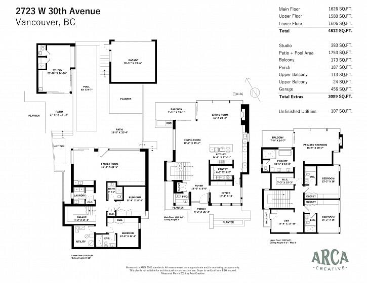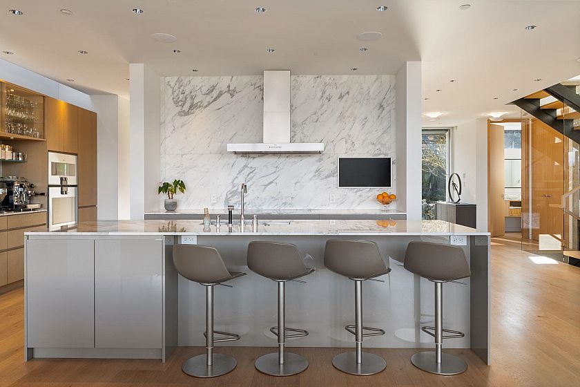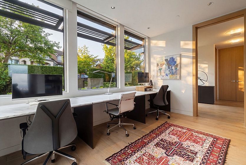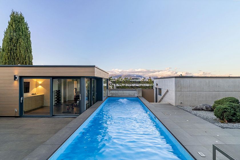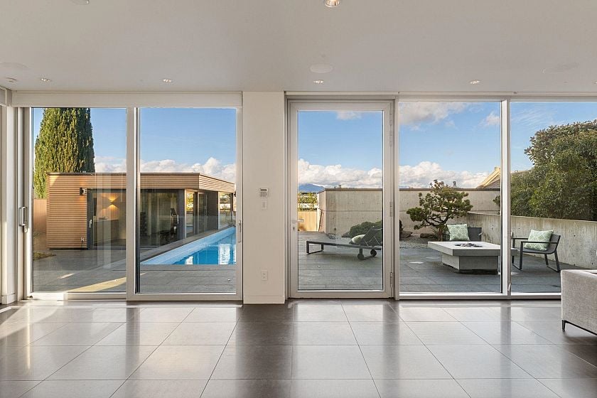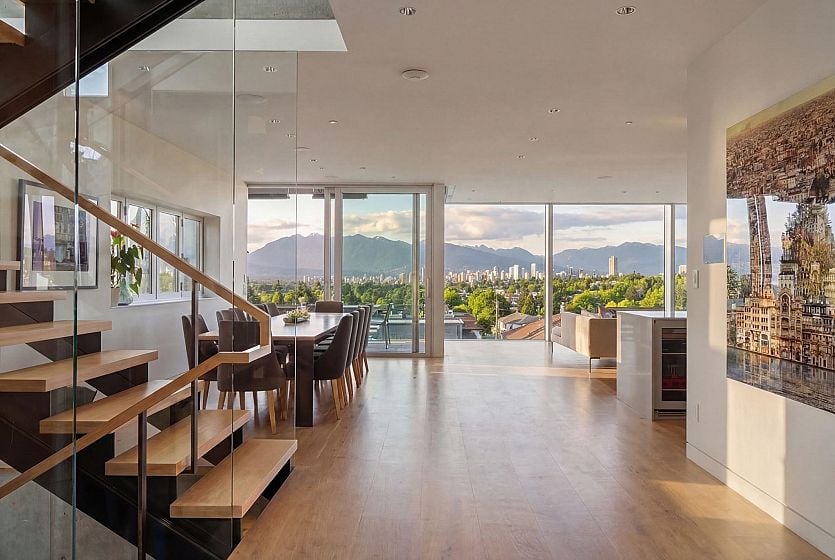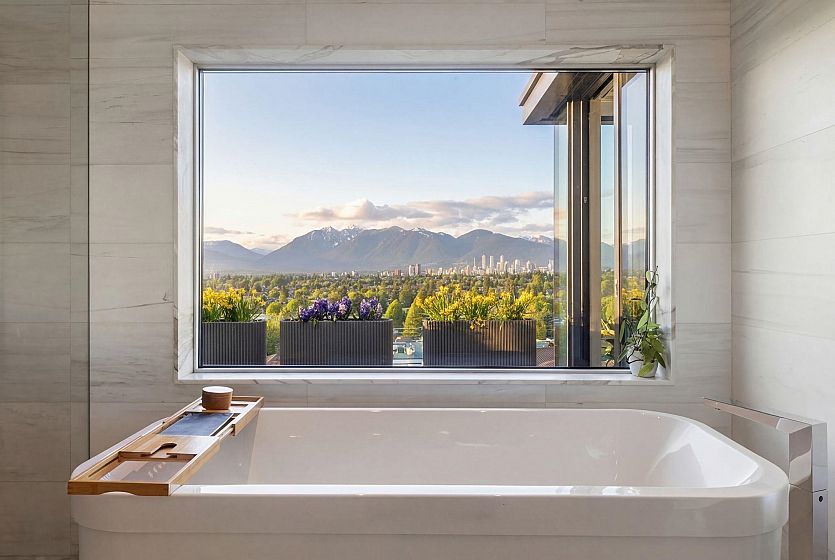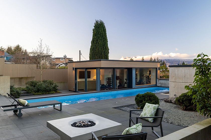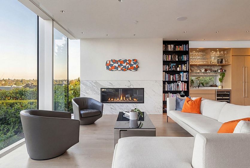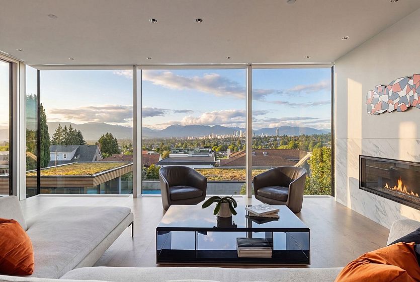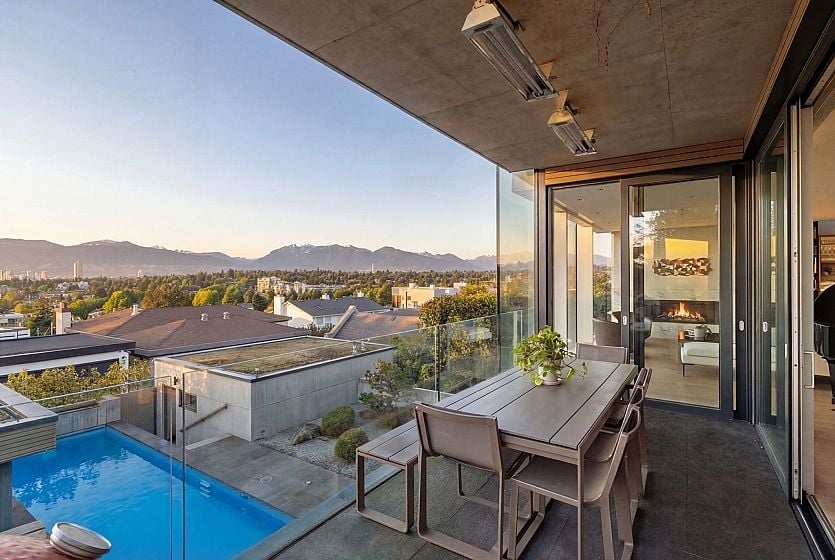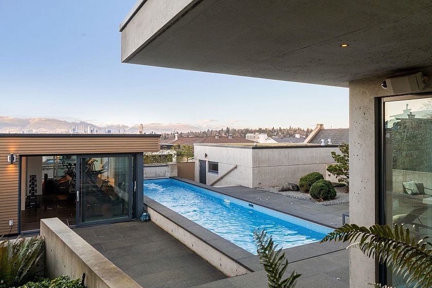 An icon of Vancouver architecture perched above Arbutus Ridge with panoramic views that stretch from downtown across English Bay. This Juli Hodgson and Sean Best design is brought to life in concrete, glass, and light. Subtle from the street, monumental in scale, and deeply calm in tone. Walls of Schüco glass dissolve the edges and enhance the views. Wide-plank Dinesen white oak grounds every step. Marble wraps the fireplaces, kitchen, and a primary ensuite, where your soaker tub gazes at snow capped mountains. The family friendly floor plan is the epitome of luxury while rooted in practicality. Modern luxuries include a heated lap pool, hot tub, poolside gym, 500 bottle wine cellar, fire pit terrace, and Japanese garden. One of the city's most remarkable homes — come experience it.