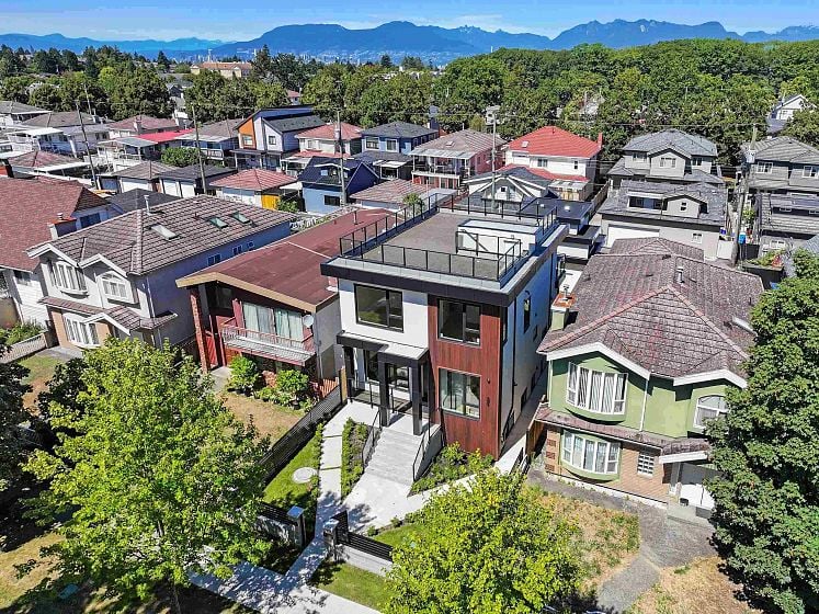 Luxury living at its finest in East Vancouver! This brand-new, custom-built 3-level residence in the heart of Killarney showcases exceptional craftsmanship and thoughtful design throughout. Offering over 3,500 sq ft of living space, this impressive home features 8 bedrooms and 7 bathrooms, including three spacious bedrooms upstairs for the main residence, a main-floor office, and a large Theatre room with bath. Enjoy outstanding income potential with a 2-bedroom legal suite plus a 3-bedroom laneway house-ideal for extended family or significant mortgage assistance. The home is finished to the highest standards with premium Dacor appliances, quartz countertops, custom millwork, triple-glazed windows, and air conditioning for year-round comfort ,Home Automation ,Massive Rooftop and much more