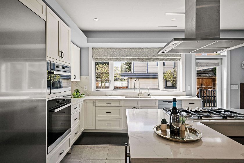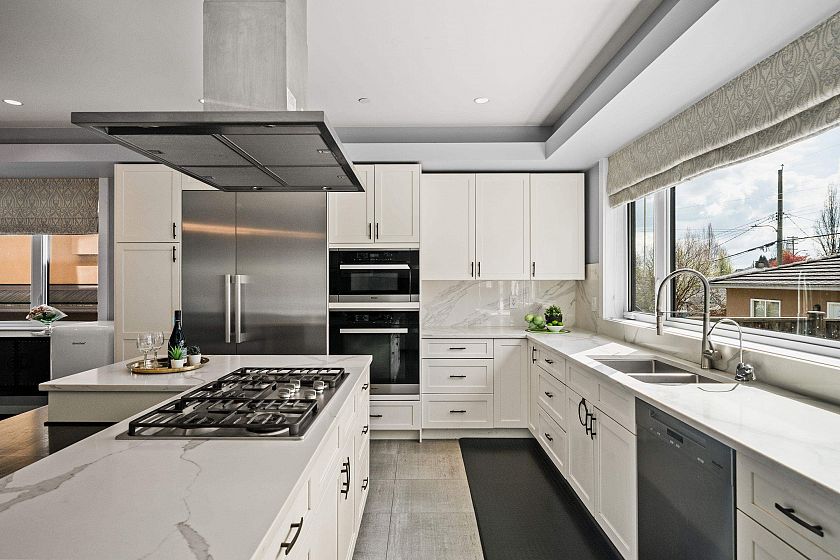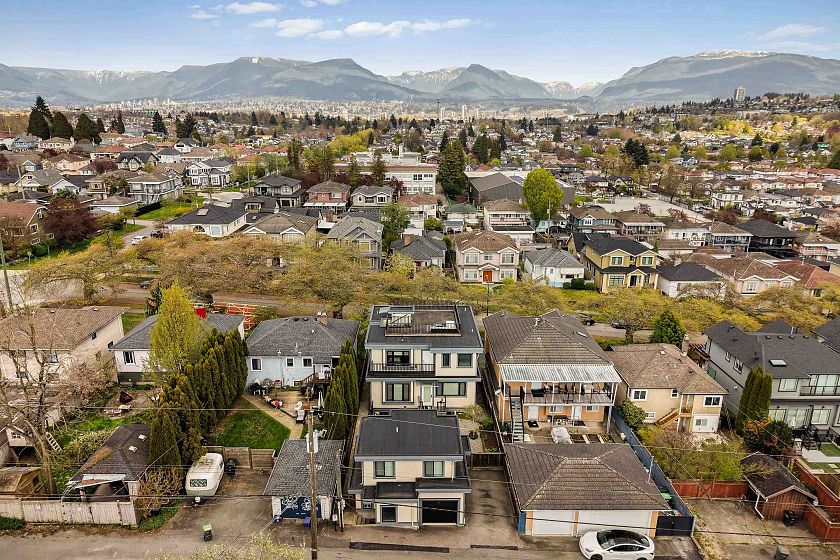 Custom-built 2017 modern masterpiece on a rare 40×120 ft lot in sought-after Renfrew/Hastings-Sunrise. Approx. 3,670 sq ft total including a laneway home, delivering 10 beds & 7 baths across thoughtfully designed living spaces. The fully separate 3-bed/2-bath legal suite with private laneway access offers immediate rental income — no shared stairs, total privacy. Radiant floor heating + central A/C ensure year-round comfort, while the stunning Unique 360° rooftop deck sets the stage for unforgettable entertaining with sweeping panoramic views. Steps to T&T, parks & top schools; 15–20 min to Downtown, Burnaby & North Shore via Hwy 1. Perfect for multi-generational families or savvy investors. OPEN HOUSE: Sat & Sun, April 25&26 2-4PM