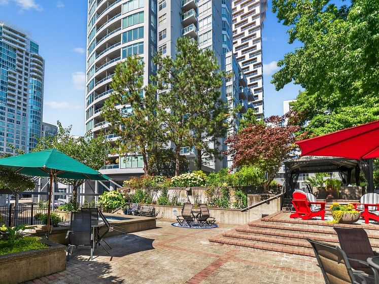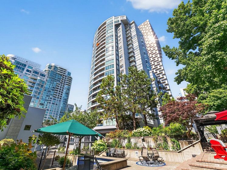 Cute and functional studio with a great layout and gorgeous city and water view! With a dedicated sleeping area, loads of windows, renovated kitchen with breakfast bar, in suite laundry and patio. The Discovery is a solid, well maintained building with a proactive strata and generous contingency reserve fund. Steps from the seawall in a quiet Yaletown pocket, this one checks all the boxes. Building features two guest suites, live in manager, gym, sauna, hot tub, amenity room, and visitor parking. Includes parking and storage - sorry, no pets. Showings by appointment.
