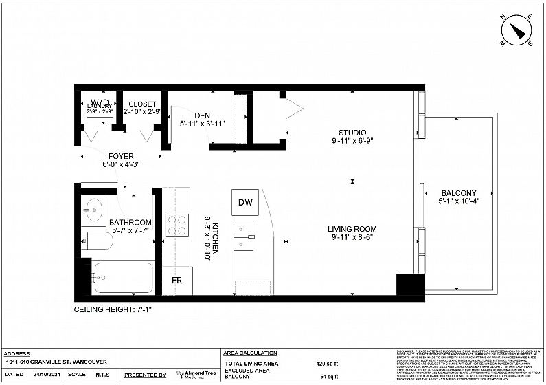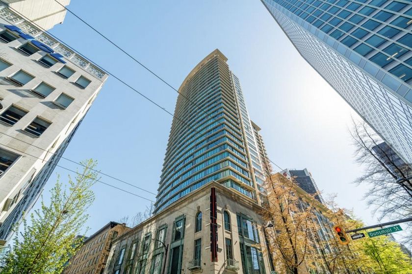 Investors Alert! Awesome rent for this SE exposure studio with a spacious BALCONY at The Hudson in the prime Vancouver downtown financial & schools campus district. Building has direct access to Skytrain & Pacific Mall Centre from concourse level, half a block to Canada Line. Winners/Holt Renfrew/restaurants are only steps away. Unit upgraded to laminated flooring, building offers biker locker. EV chargers, 24-hr concierge, fitness room, lounge rooms. This superb location offers the ultimate downtown lifestyle. Great tenant with great rent for investor. Items included: 1 sofa, 1 murphy bed, 2 counter stools, 1 dresser, 1 small bedside table, 1 floor lamp, 1 table lamp, 1 long framed artwork, 2 framed leaf artwork, 1 folding table (balcony), 2 folding chairs (balcony)