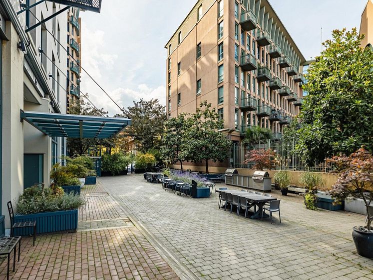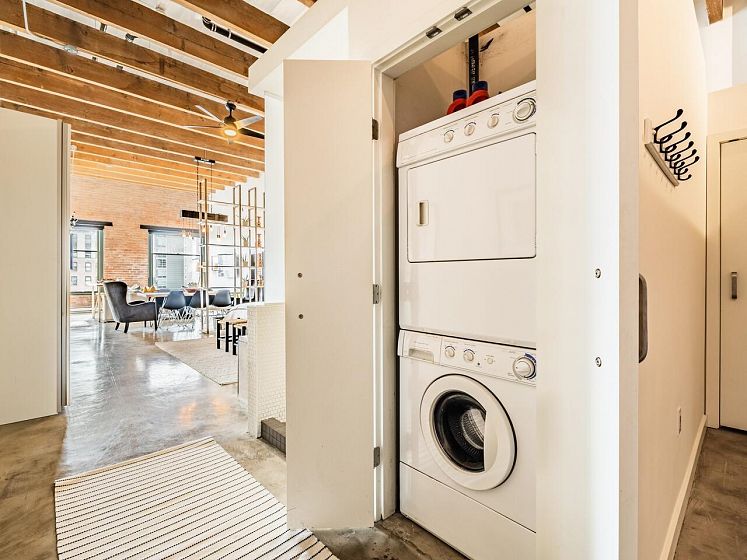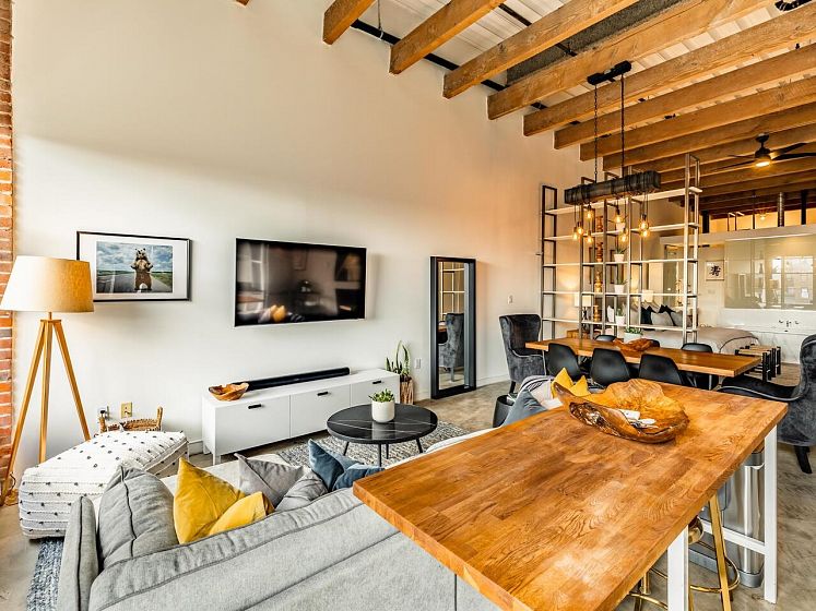 Located in historic Gastown, Koret Lofts offers open plan for New York style loft living. Rarely available 5th floor unit with ultra high ceiling soaring over 15 ft featuring original fir beam and exposed brick wall. This heritage building was converted by Alda Pereira design in 2006, where urban heritage meets modern living with concrete floors, euro kitchen, walk through shower and spa soaker tub. Commercial and residential zoning allows for office/studio/airbnb uses, ideal for home office with live/work space. Gated complex with a beautiful garden courtyard equipped with BBQ..Open House Sun, Oct 19,2025, 2-4pm