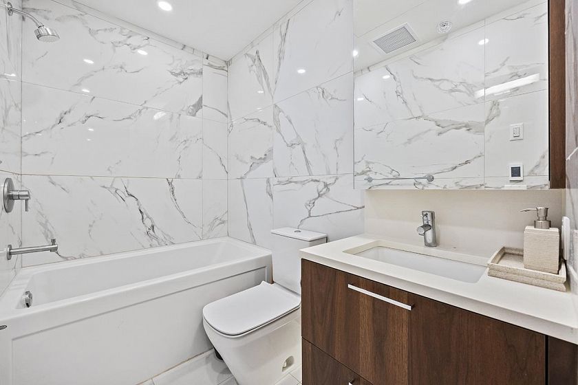 Bright, East Exposure with Peaceful Ambiance! Step into this immaculate studio home that feels just like new, boasting soaring high ceilings and a RARE oversized private patio. Facing east on the quiet side of the building, you’ll enjoy serene mornings with soft natural light and a tranquil setting away from the hustle. The functional open layout maximizes every inch of space, perfect for both daily living and entertaining. Truly move-in ready condition —this home offers the ideal blend of comfort, style, and privacy. Only 4 minutes’ walk to the QE Park. Come with 1 Parking. Don’t miss this rare opportunity to own a quiet urban retreat with a spacious outdoor oasis! Open House, Nov 01, Sat, 2-4 p.m.