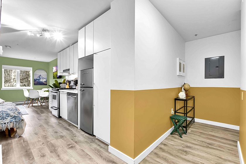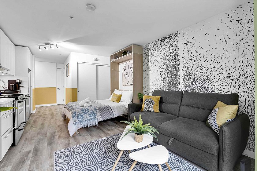 Welcome to 21 Doors in the heart of Gastown - an ideal opportunity to get into the market or generate rental income. This concrete building was fully modernized in 2011 and allows short-term rentals including Airbnb offering excellent flexibility. The suite features an efficient open layout with in-suite laundry, stainless steel appliances, ample storage, and a spacious bathroom. Extensively renovated in May 2023 with new flooring, fresh paint, stylish wallpaper, new bathroom vanity, and upgraded lighting and fixtures throughout. Fully furnished with premium new furniture included making this a true turn-key opportunity. Enjoy the communal inner courtyard with BBQ and dining area. Steps to Gastown’s top restaurants, cafés, shopping and urban living at your doorstep. Book your showing now!