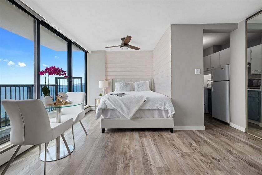 Stunning panoramic ocean views from the 21st floor. This 430 SF penthouse studio unit awaits your dream designs. Million dollar views for less than 1/2 the price. Amenities include a huge outdoor swimming pool, secure underground parking, lots of visitor parking, bike room & storage locker. Located on one of Vancouver's quietest streets & just steps from Sunset Beach, the seawall, Stanley Park, public transportation, the West End & Downtown. In 2018 Westsea Towers completed a $7+ million restoration project including new double glazed windows & doors, refinished concrete exterior & paint, balcony membranes/resurfacing, roof and pool/parking, garage membrane. Maint. fee includes heat, hot water & property taxes. Pre-paid Leasehold to 2073.