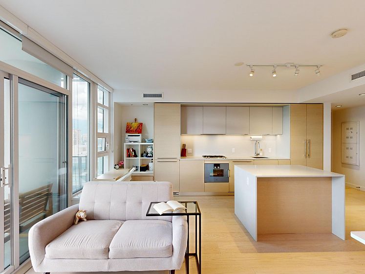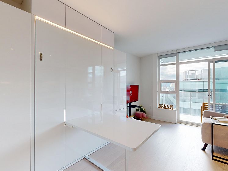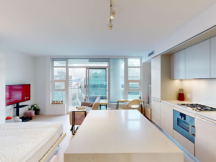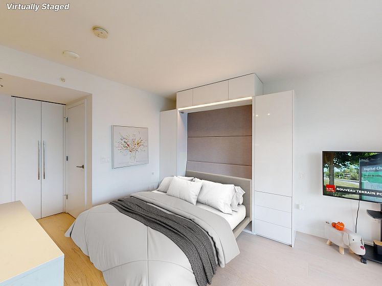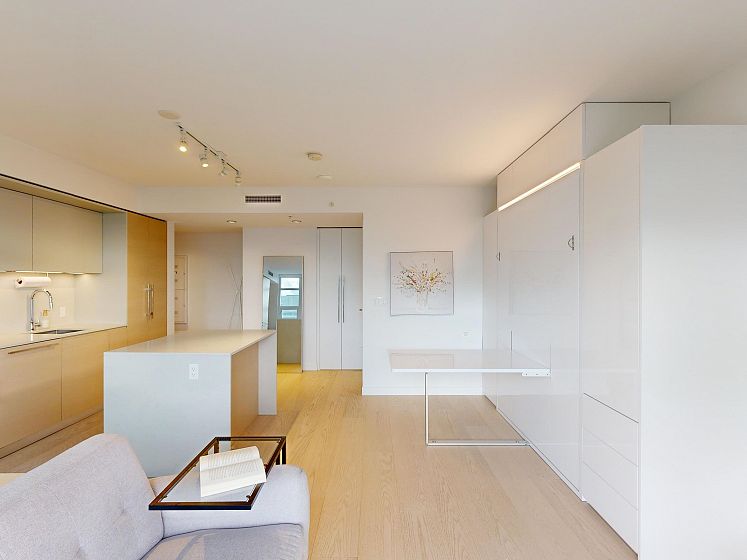 REDUCED! Enjoy ENGLISH BAY VIEWS in this very well laid out studio at One Burrard that feels larger than square footage suggests. Built in 2022 and featuring custom murphy bed/dining table, high end Gaggeneau appliances, engineered hardwood flooring throughout, air-conditioning, Duravit wall mount toilet, smart home controls for temp/lighting, quartz counters. Some of the best amenities of any building including: 24/7 concierge, swimming pool, sauna, steam room, hot tub, exercise gym, indoor/outdoor dining rooms, yoga room, guest suite. No parking. Storage locker included. Ideal for investor or first time homebuyer.