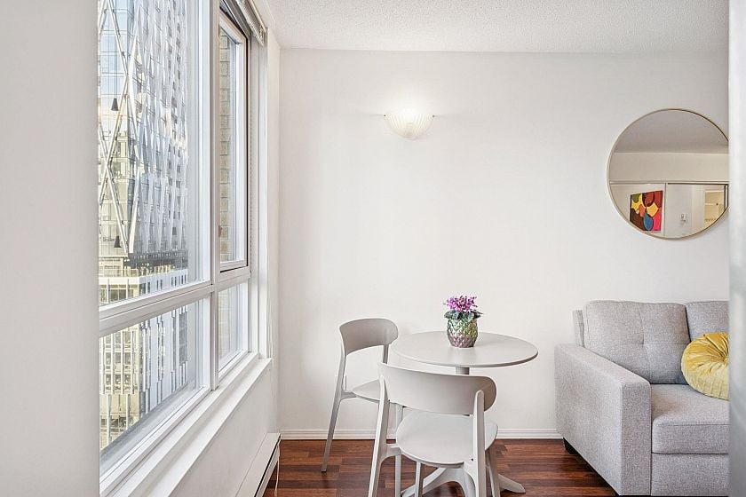 Welcome to Park Plaza in Yaletown. Unit 1202 is a large studio facing the beautiful Emery Barnes Park, your urban oasis where you can enjoy walks by the tiered fountain and eat lunch by the pergolas. Rainy day? Not to worry as your private fitness centre with sauna is easily accessible at your building’s lobby level. Park Plaza is fully rainscreened, new windows (2005), new plumbing (2010), new gym (2014), renovated elevators & lobby (2017). A walker and bikers paradise just steps to some of the finest restaurants in Vancouver, boutique shops in Yaletown, skytrain, and Vancouver Seawall. Insuite Laundry and ONE SECURE UNDERGROUND PARKING STALL INCLUDED! New furniture can be included.