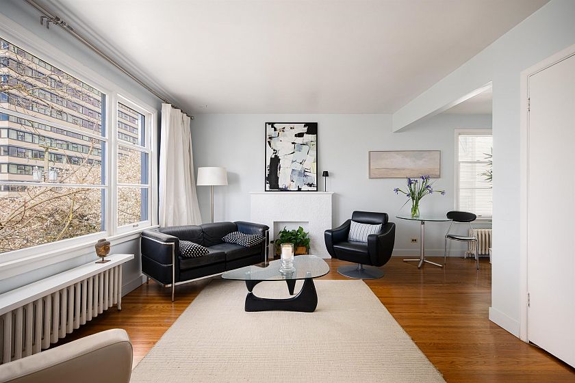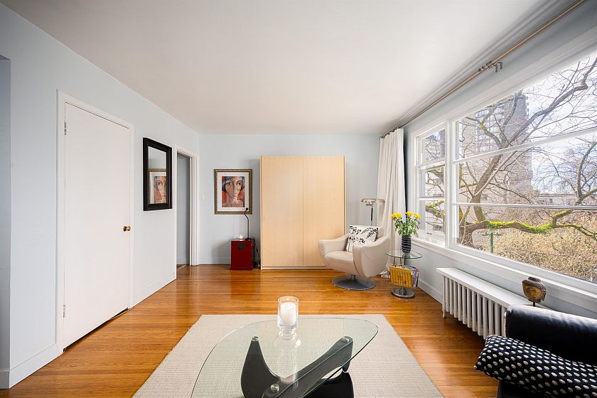 Buy an ownership stake in LAND in Vancouver. NOT A LEASEHOLD. Seacrest Apartments Limited co-op owns the land AND building. ALL OWNERS HAVE SAME NUMBER OF SHARES - RARE! You own shares in the co-op. Only twenty units in development. This is a bright, TOP-FLOOR, CORNER suite with a treed outlook. Great air flow with windows open. Great vintage vibes in both unit and common areas. Incredible location with fantastic access to the seawall, Stanley Park, and Denman. Recent updates to building include new roof, new boilers and hot water distribution system, upgraded electrical panels, new insulation and most plumbing upgraded to PEX. All units must be owner-occupied and just one occupant allowed in this unit. Sorry, no pets!