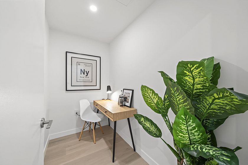 This brand new, spacious Studio + Den home offers amazing city and mountain view! The smart partition system cleverly separates the sleeping and dining area, spacious den is perfect to Work From Home! Rarely does a studio feels this big and comes with a den as well. This home feels much bigger in person! Lina at QE Park is the last brand new, move-in ready LEED GOLD CERTIFIED concrete building located in Vancouver's popular Cambie Corridor. This modern home offers ultra high ceiling, drawing in the postcard views of Oakridge Mall and mountain view from extra large windows. Air conditioning for year-round comfort. Comes with 1 Parking. Open House Every Sat and Sun 2-4pm. Full GST Rebate for first time homebuyers