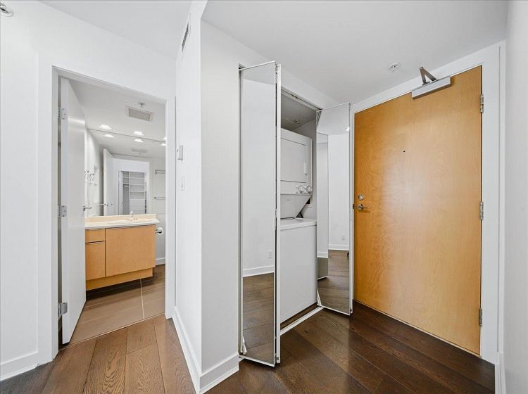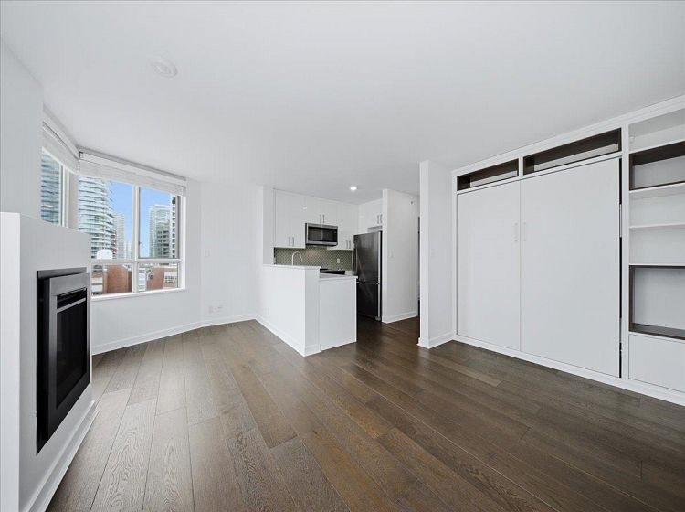 Beautifully updated open-concept studio at Seastar by Concert Properties. Freshly painted in 2026, this home features engineered hardwood floors, a custom California Closets wall bed with built-ins, and a fully renovated kitchen with quartz countertops and stainless steel appliances. Some of the additional upgrades include smooth ceilings, a new gas fireplace with surround, walk-in closet with custom built-ins, updated bathroom, Bali blinds, and modern lighting throughout. Enjoy an unbeatable location just steps to Sunset Beach (off-leash dog park), Fresh Street Market, the Seawall, and countless cafes and restaurants. Includes one secure underground parking stall, visitor parking, EV charging, a guest suite, and a pet- and rental-friendly building. Showings by private appointment.