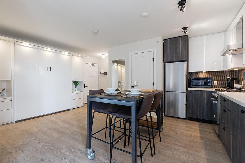 Welcome to The Wohlsein, concrete mid-rise building nestled in the heart of Mount Pleasant. This bright & spacious studio is centrally located just steps from parks, shopping, schools, transit, top restaurants & breweries yet it is situated off the busy roads and in a nice inner street. This home features a large balcony with incredible city and mountain views, Murphy bed, high quality stainless steel appliances & lots of storage space. Fantastic amenities include gym, artists workshop, stunning gallery, social/amenity room & a rooftop patio with stunning views. Airbnb allowed up to 120 days in a calendar year. A MUST SEE!
