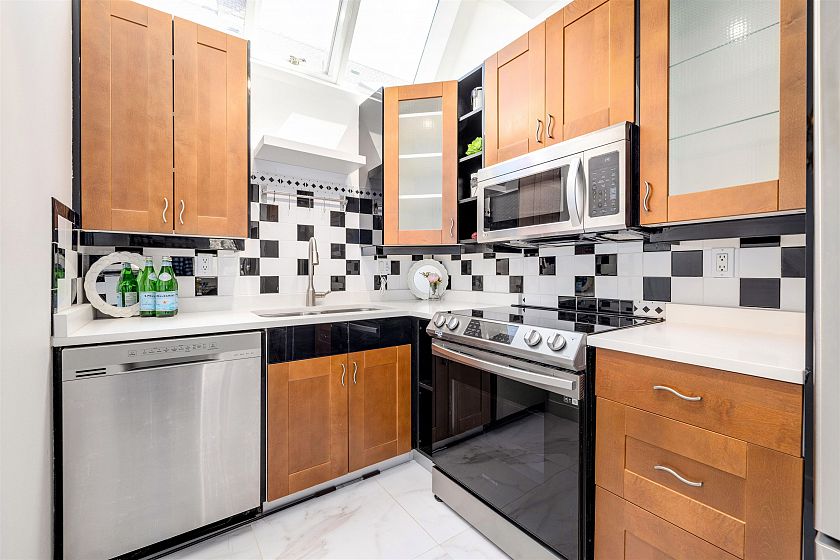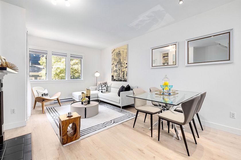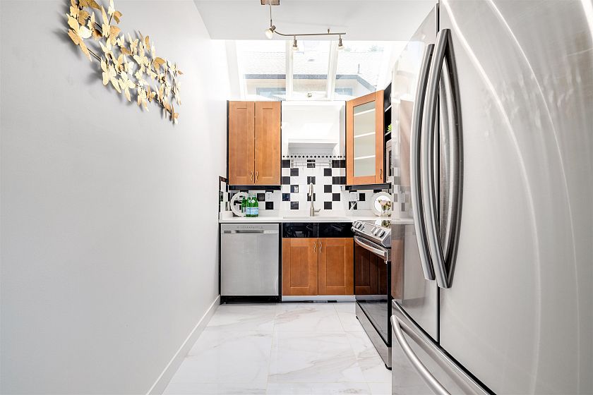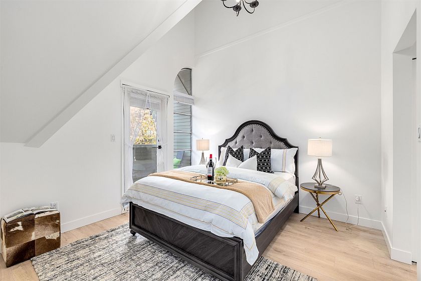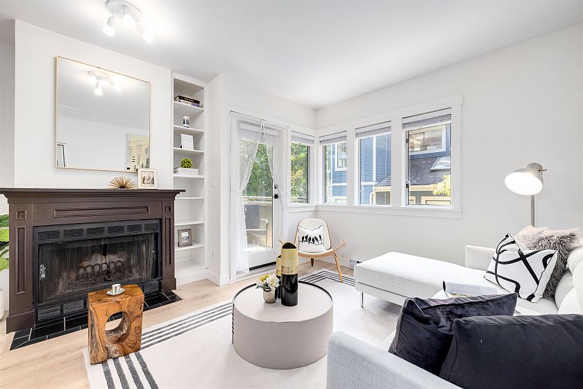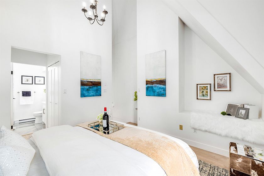 Discover this bright, fully renovated three-level fourplex on a serene, tree-lined street, just a few blocks away from the lively 4th Avenue in the heart of Kitsilano. The main floor offers a charming living and dining area with a cozy wood-burning fireplace, an open kitchen featuring stainless steel appliances, and skylights that fill the space with natural light. Upstairs, the master bedroom boasts 17-foot vaulted ceilings, a private balcony, an ensuite, and dual closets. The lower level includes a spacious second bedroom, a full bathroom, and generous in-house storage. Comes with one parking spot and additional storage. Don't miss out - call today! Open House Sep 20 Sat 2 to 4pm