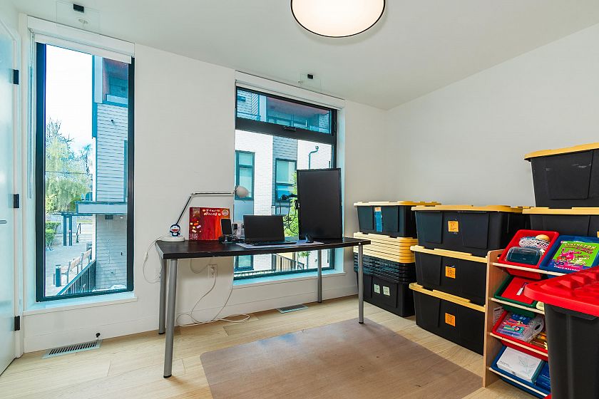 Built by Coromandel Properties. Efficient & modern Japanese esthetic throughout home. Sophisticated exteriors with white brick veneer, matte black window mullions & a bold yellow door. Open concept main flr with 9’ ceilings featuring A/C, chevron pattern engineered Oak H/W flrs, powder room for guests & lots of custom millwork incl. custom entry bench with shoe storage & double-entry closet. Kitchen with Miele appl. pkg, matte grey Quartz counters & backsplash, matte black Kohler faucet & Oak veneer cabinets. Private master suite with beautiful 5pc ensuite & large balcony. Second level with 2 large bedrooms & laundry. Jamieson & Churchill school catchment Close to everything! Parks, Oakridge mall, Langara Golf, UBC, etc.