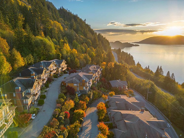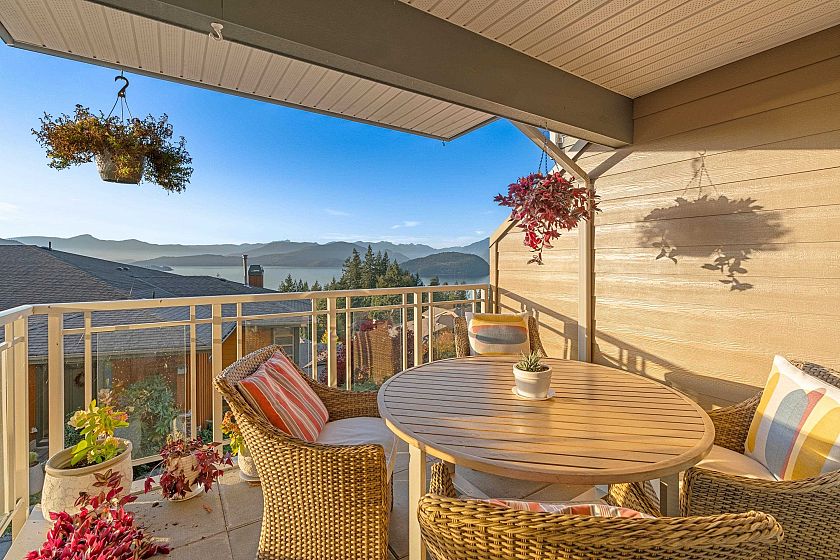 West Coast Lifestyle and stunning views! Half duplex styled townhome with expansive ocean views. One of the best floor plans in the complex featuring formal entry and guest powder leading up to bright main floor with open plan living, dining, kitchen and family room. Kitchen features granite counter tops and stainless appliances and the living room features high vault ceiling with access to covered dining patio as well as breakfast patio off the family room. Upstairs features a very large primary bedroom with luxurious 5 piece ensuite and walk in closet, plus large 2nd and 3rd bedrooms and a 4 piece bath. Double garage and move in condition. Great for empty nesters and outdoor enthusiasts.