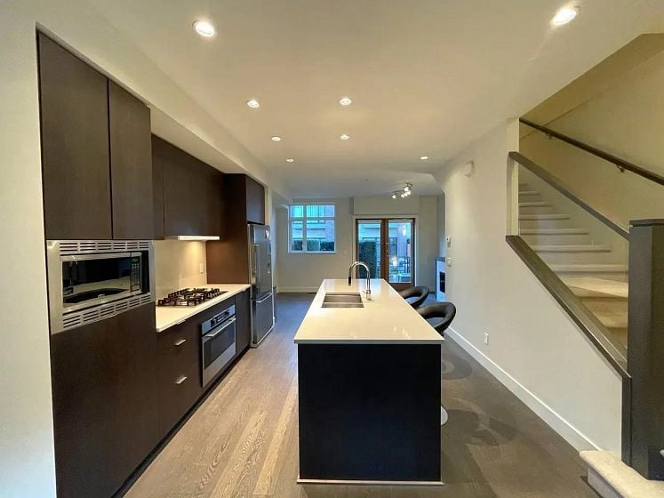 This cozy 4 level East, West facing townhouse offers 3 bedrooms, 2 bathrooms with 1,758 Sq Ft. living space at prime Vancouver west side. Contemporary style living room with a good size kitchen. Granite countertop and S/S appliances, which extends to a large dinning area. Hard wood flooring through out the all floor. Three bedrooms two bathrooms upstairs. One large flex-room can be perfect gym or entertaining room. 2 side by side parking just out side of the door. Fenced front and back private yard connects the green space in the complex which feels living in a garden. School catchment: Dr. Annie B. Jamieson Elementary, & Eric Hamber Secondary.