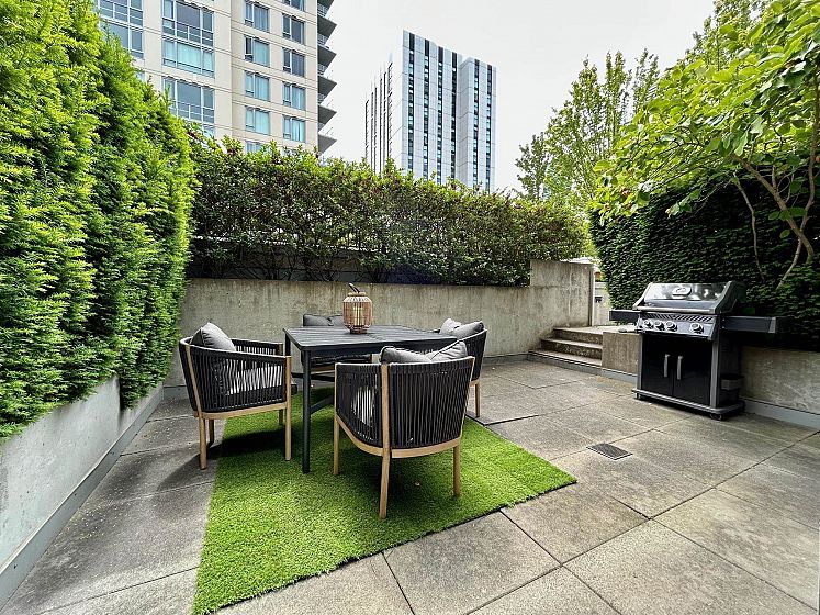 COVETED STERLING HOUSE! Quality concrete construction built by Intracorp. This is one of the nicest townhomes in this community! This 2 story corner townhome offers spacious and open-plan living, high ceilings, large windows, 3 bedrooms and 2.5 baths. Wonderful private outdoor space with a large south and west facing terrace to enjoy and entertain on those sunny days. This home has the feeling of a detached house with your own front door on a quiet street. Plus, you have a second front door inside connecting to the lobby and parking. Easy access to forested trails, beaches and all the amenities and facilities at UBC. 2 side by side parking spots plus a storage locker included.