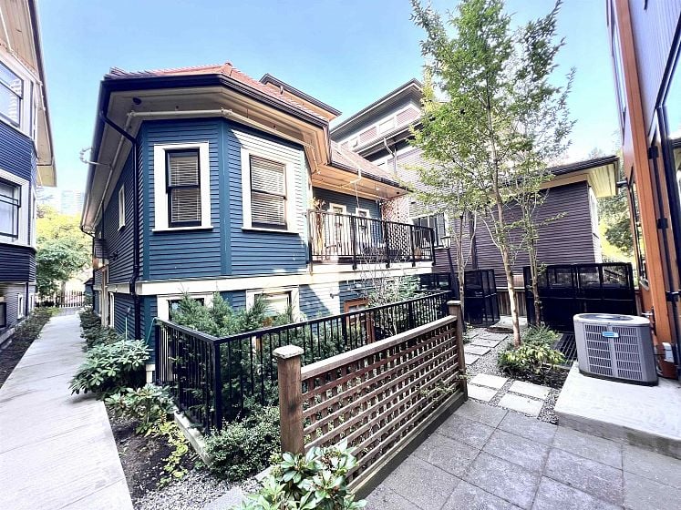 Boutique builder VANDWELL Developed the stunning Heritage Retention townhome across from Nelson Park - a once in a lifetime rare opportunity to own in the historic MOLE HILL, Vancouvers' last intact block of early West End residences. Complete restoration & re-imagination of the 1903 Class A designated MACGOWAN residence into a 6 units development. This home is 2 level, 2 bdrm & 2.5 baths with a massive open concept house feel & south exposed heritage deck. Large open chefs kitchen & island, Miele stainless appliances, 6 burner gas range, custom wood cabinetry, central A/C & HRV. Lord Roberts Elementary & King George Secondary school catchment. Steps to English Bay, Stanley Park, Pacific Shopping Mall and Robson street etc.