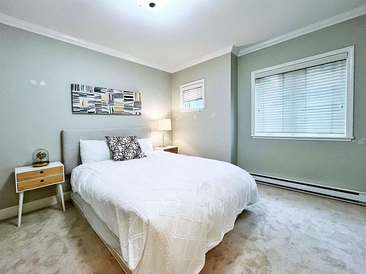Charming West End townhome inspired by classic New York brownstone design, tucked away on a peaceful, tree-shaded street. This residence features both a private rooftop retreat and a welcoming front terrace. The main level offers a gourmet kitchen complete with granite counters, ample cabinetry, a Wolf gas cooktop and Subzero refrigerator. Rich hardwood floors, elegant crown mouldings, vaulted ceilings, and recessed lighting add warmth and character throughout. The upper floors include two generously sized bedrooms and two full baths. The primary suite accommodates a king bed with ease and includes a custom-designed closet system plus an ensuite showcasing dual vanities, a deep soaker tub, a separate glass shower, and a skylight that fills the space with natural light. 1 parking 1 locker