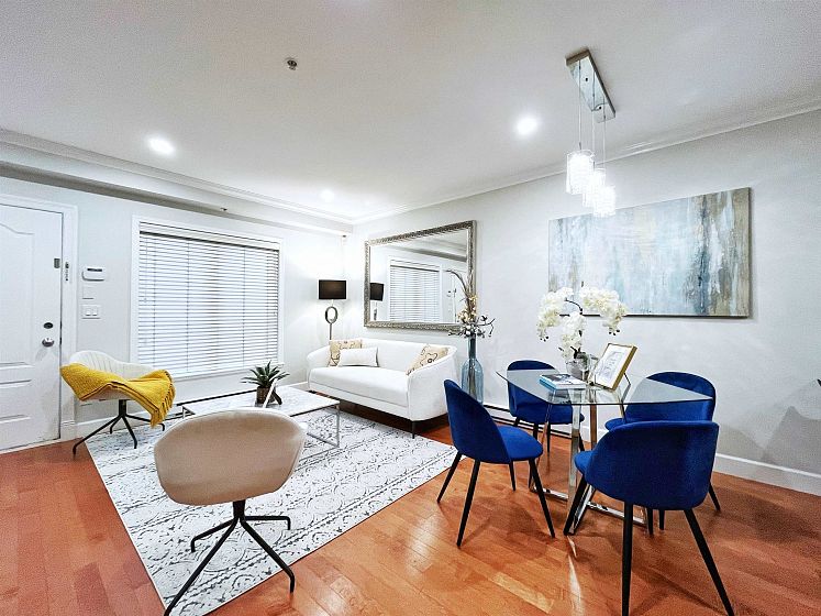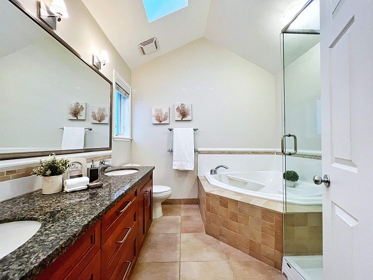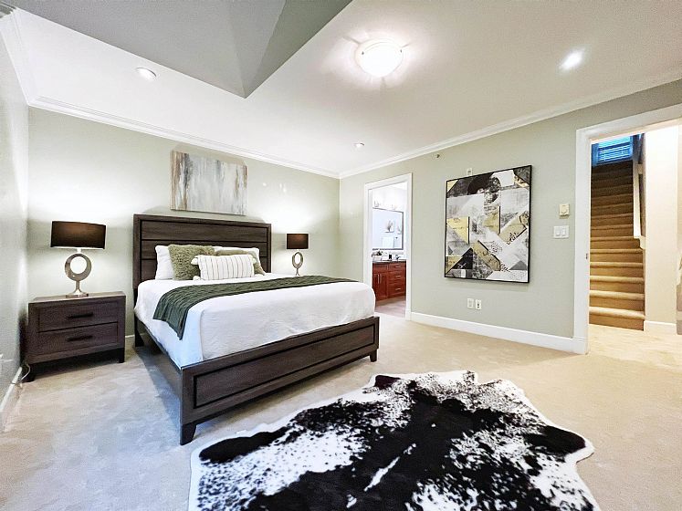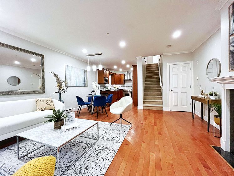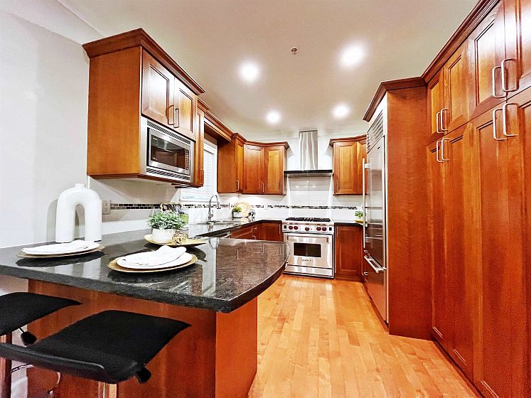Charming West End townhome inspired by classic New York brownstone design, tucked away on a peaceful, tree-shaded street. This residence features both a private rooftop retreat and a welcoming front terrace. The main level offers a gourmet kitchen complete with granite counters, ample cabinetry, a Wolf gas cooktop and Subzero refrigerator. Rich hardwood floors, elegant crown mouldings, vaulted ceilings, and recessed lighting add warmth and character throughout. The upper floors include two generously sized bedrooms and two full baths. The primary suite accommodates a king bed with ease and includes a custom-designed closet system plus an ensuite showcasing dual vanities, a deep soaker tub, a separate glass shower, and a skylight that fills the space with natural light. 1 parking