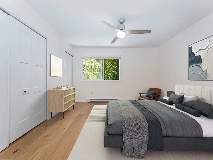 IT'S BIG! With over 1700 square feet on 3 levels, this 3 bedroom offers space for the growing family. This EXTENSIVELY and TASTEFULLY UPDATED townhome is GORGEOUS with new and redesigned kitchen and SS appliances, updated bathrooms, engineered hardwood floors, new windows, lighting, baseboard heaters, glass railings, etc. The room sizes are all very generous and the flex space COULD EASILY BE CONVERTED to a 4th bedroom, office or kids' playroom. The primary bedroom is truly special with its fully renovated bathroom.The location is quiet and private with the fully enclosed yard area backing onto a quiet greenbelt. Minutes' walk to transit, Champlain Annex school and Everett Crowley Park. Pet and kid friendly complex. CALL YOUR AGENT TODAY!