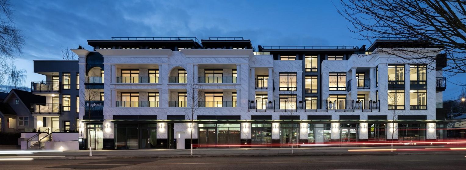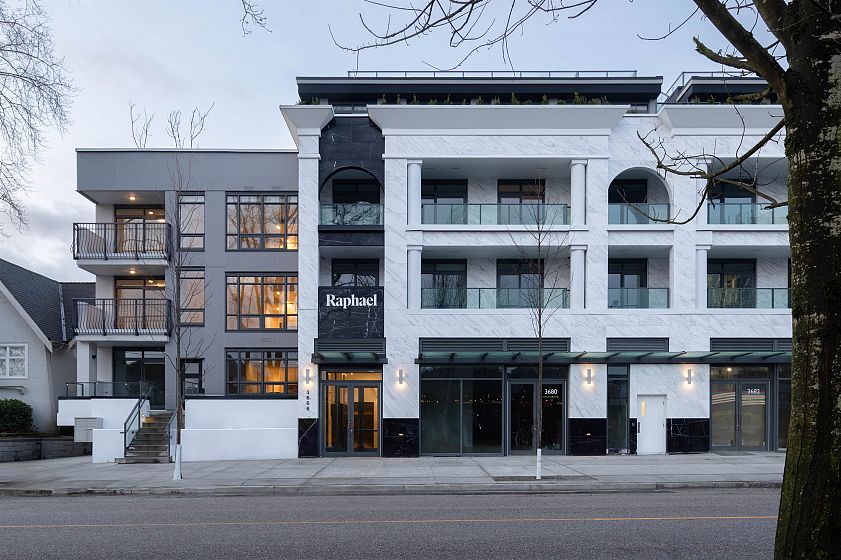 FINAL RELEASE at RAPHAEL - A curation of 35 exquisite residences where the neighbourhoods of Point Grey, Kitsilano and Dunbar come together. Designed by Rafii Architects and inspired by a European aesthetic; contemporary style seamlessly blends with traditional architecture. This 4-storey building features a marble facade, classical columns, and expansive windows. Show-stopping interiors by Ste. Marie Design feature timeless details including Italian cabinets, marble stone countertop and premium Wolf & Sub-Zero brands. Thoughtfully designed closet systems with ample space in the main entry and bedrooms. Composed of marble-inspired floors and walls, granite countertops, and chrome fixtures, the ensuite beautifully contrasts materials for a lasting impression of refinement.
