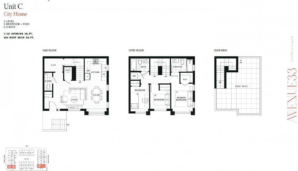 AVENUE 33. Adjacent to Eric Hamber Secondary High School, walking distance to Van Dusen Gardens, Queen Elizabeth Park, King Edward Canada Line & Cambie Village, or quickly connect with Oakridge, Downtown, YVR or Richmond. Just a few Developer held homes remain! Three bedroom MOVE-IN-READY Townhomes in four boutique buildings that frame a secluded private courtyard offer features such as: Air Conditioning, 9' ceiling heigh, Kitchens designed with custom cabinets, quartz countertops and full-size Miele appliances, Select homes feature a pull-out pantry, Engineered wide plank hardwood flooring in main living areas, Nuheat ensuite bathroom flooring. Rooftop decks with natural gas bib, water bid & glass surrounds. All homes include 1 EV capable parking.