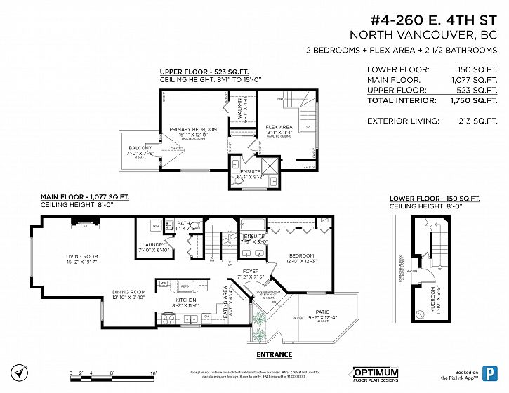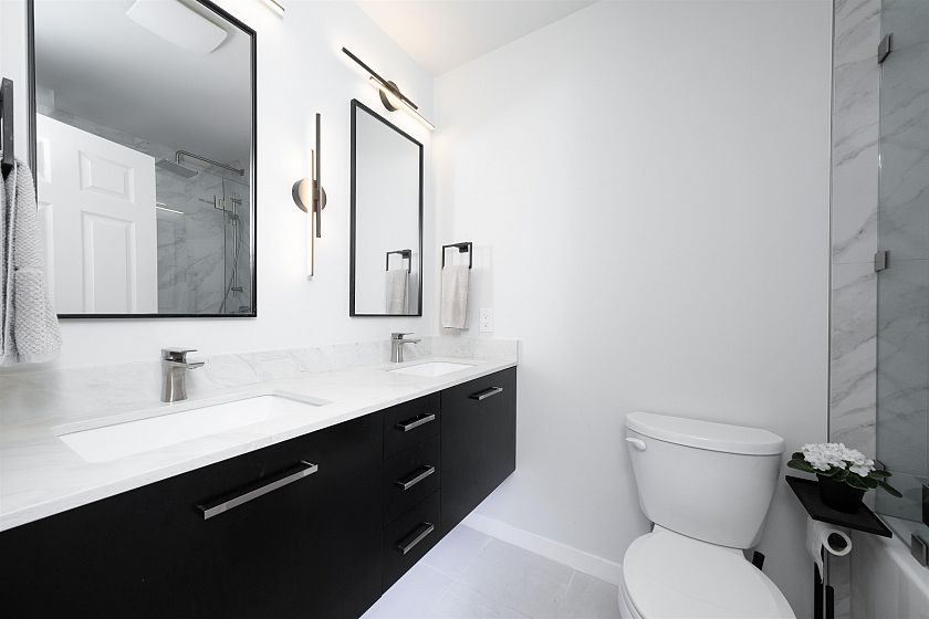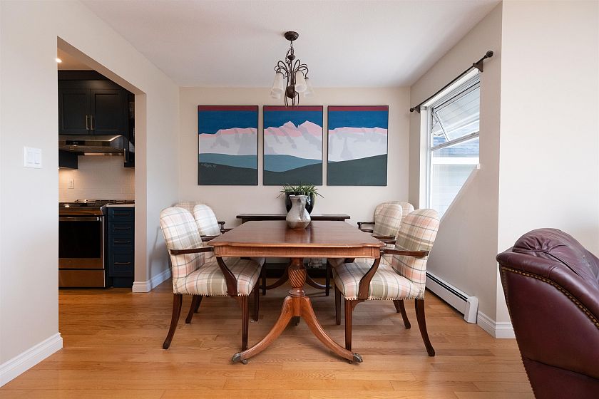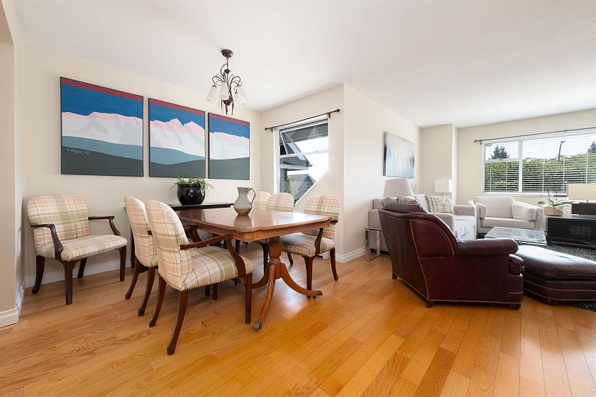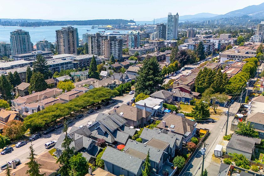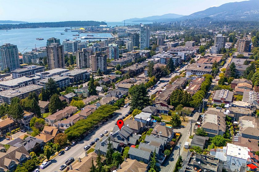 Townhome Living in Lower Lonsdale with Harbour and City Views! 2 bedroom+Den perfect family or couple home or downsizer w/ 1750 sq.ft. Main floor open plan w/ feels like a larger home. Stylish new Merit Gourmet kitchen w/ custom cabinetry, Dekton counters, stainless steel appliances, coffee station+eating area, new oak hardwood floors. Living/dining open plan w/ room for piano, powder and laundry room w/ freezer. Oversized bedrooms w/ ensuites allow for Primary bedroom on main floor or top floor. Upper floor features vaulted ceilings and bedroom with city+ harbour views and private balcony + spacious "flex" room can be home office or 3rd bedroom for guests. Lower level mudroom direct access to 2 parking, storage. Security system Amazing location to Quay, restaurants. Live here!