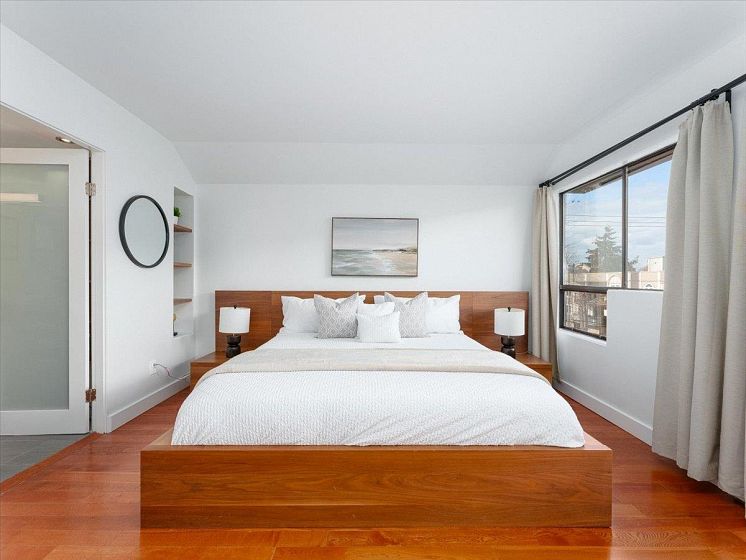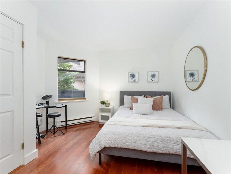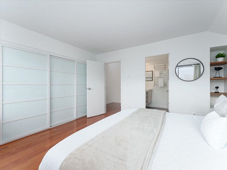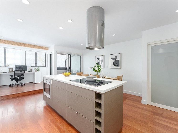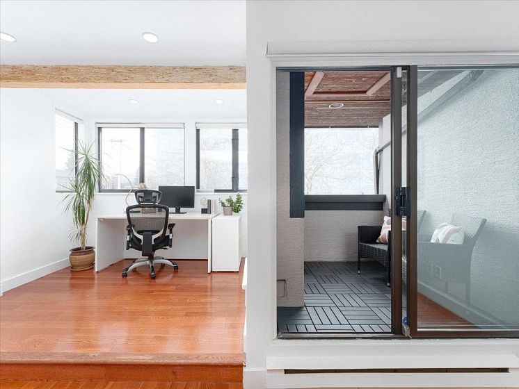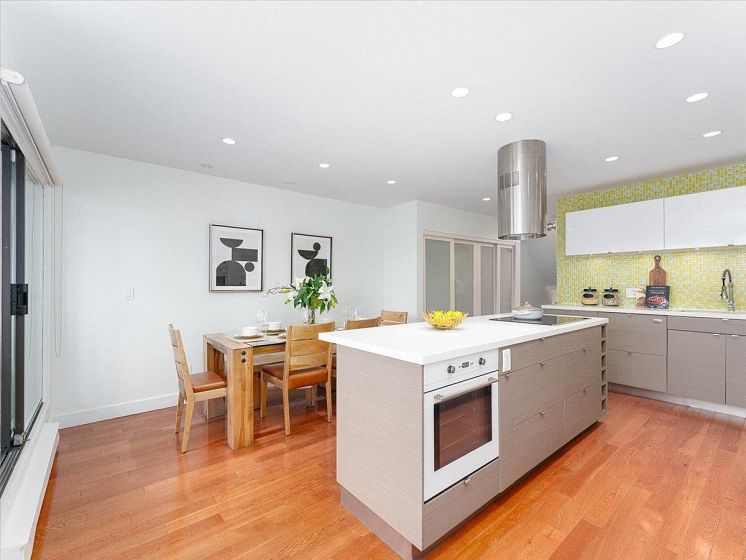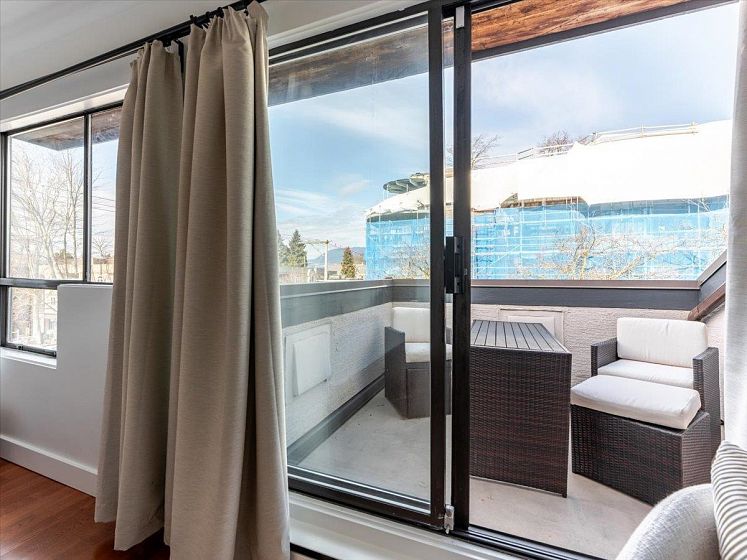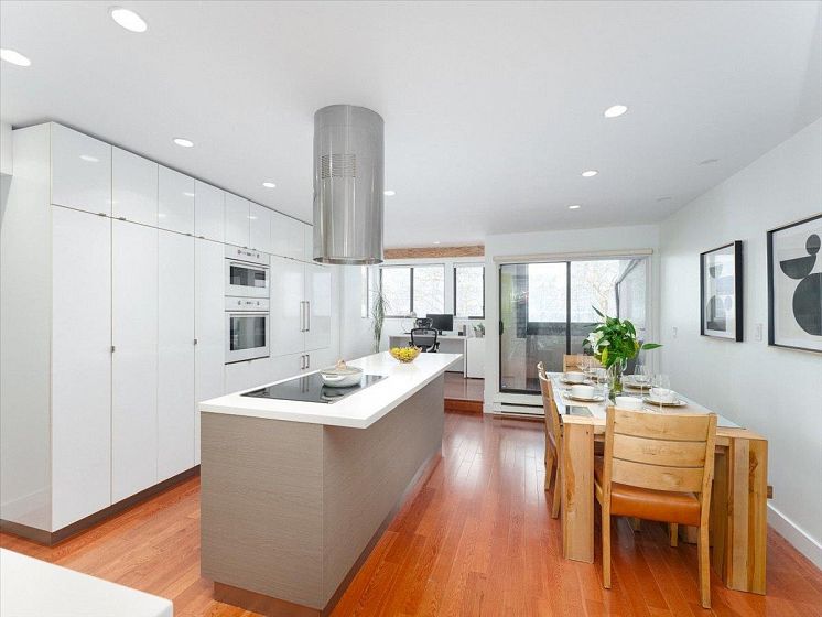 Welcome to this stunning 2b2b+den south-facing townhome.Tastefully renovated in 2016, offers a perfect blend of modern elegance and cozy comfort.Step inside to discover an open-concept living and dining area, flooded with natural light. The gourmet kitchen is a chef's dream, equipped with high-end stainless steel appliances, sleek quartz countertops, and ample cabinet space.The contemporary design features high ceilings and hardwood flooring, creating an inviting atmosphere for both relaxation and entertaining. Nestled in vibrant Kitsilano, you will be just steps away from parks, cafes, boutique shops, and public transportation. Experience the best of urban living while enjoying the charm of a quiet residential street.