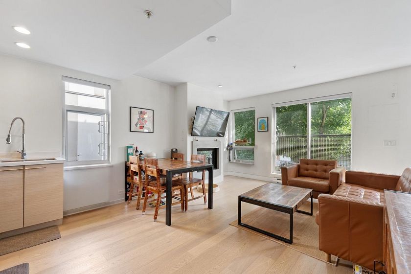 Discover urban living at its finest in this contemporary 3-level townhouse at SoMa Living in vibrant Mount Pleasant. This unique 1 bedroom, 1 bathroom home offers over 756 sq.ft. of efficient interior space plus a private rooftop deck with sweeping city views. The open-plan main level is highlighted by sleek modern finishes, expansive windows, and abundant natural light. Perfect for young professionals or couples, this home combines stylish design with everyday convenience. Steps to Main Street cafés, restaurants, and shops, and minutes to Kingsgate Mall for daily needs. Includes 1 parking and 1 storage locker. School catchments: Florence Nightingale Elementary and Sir Charles Tupper Secondary. OpenHouse Oct 26 Sun 2-4 PM