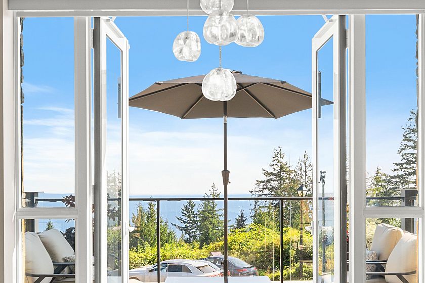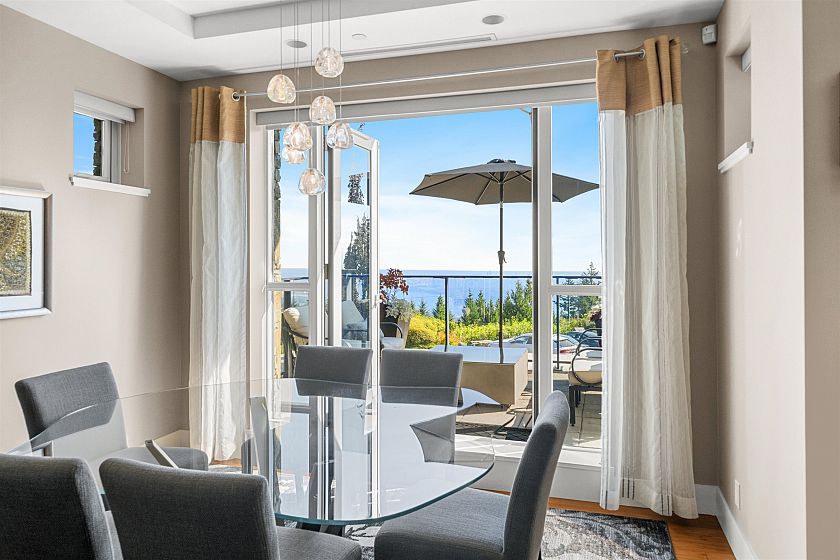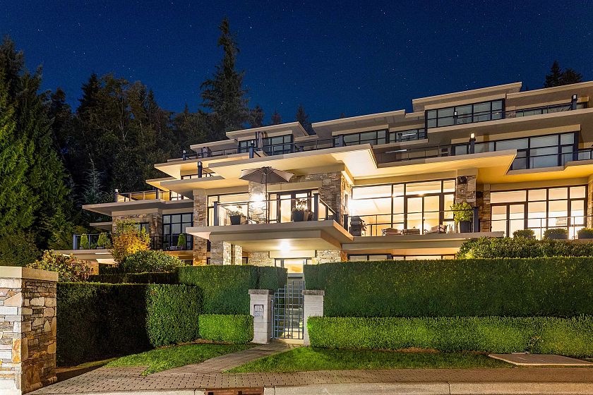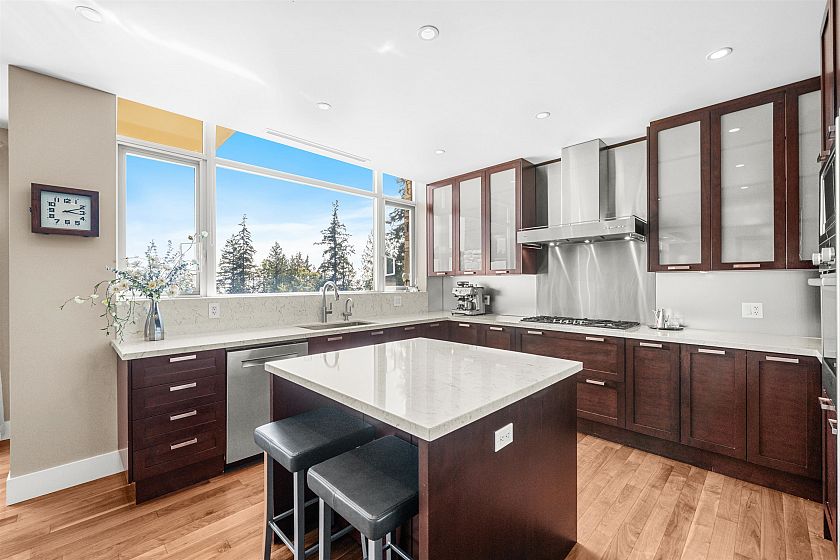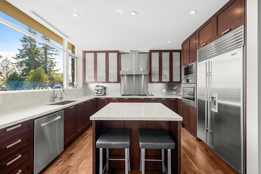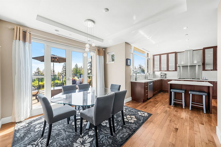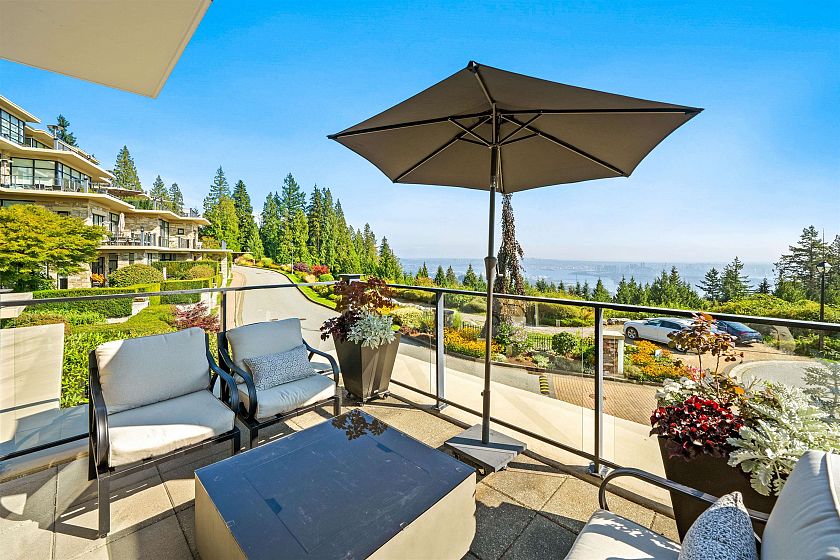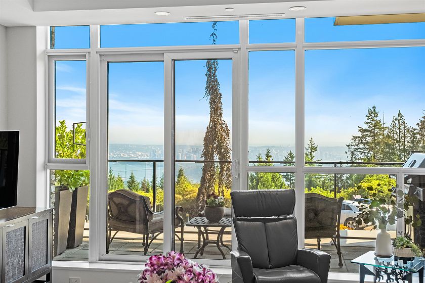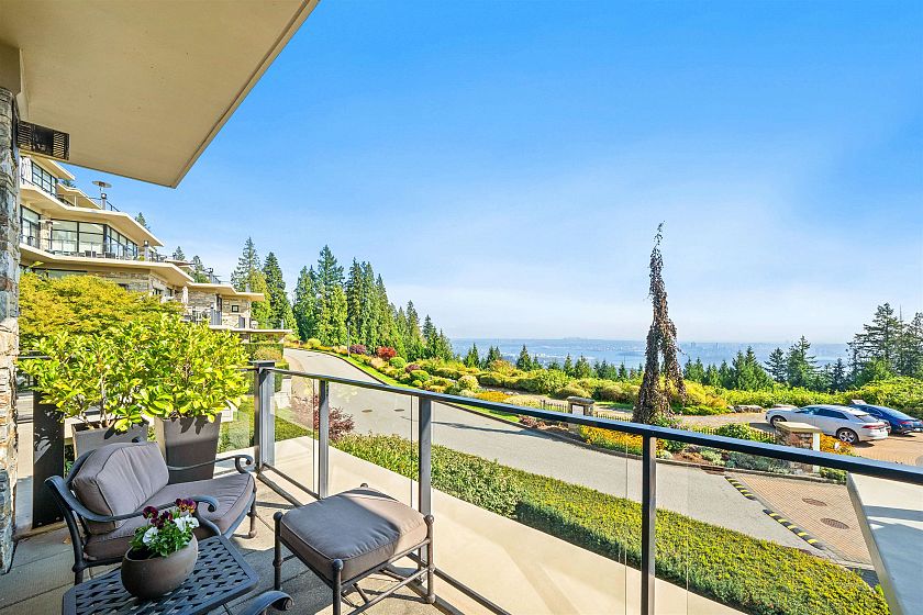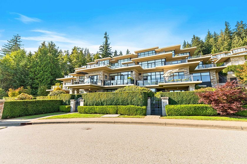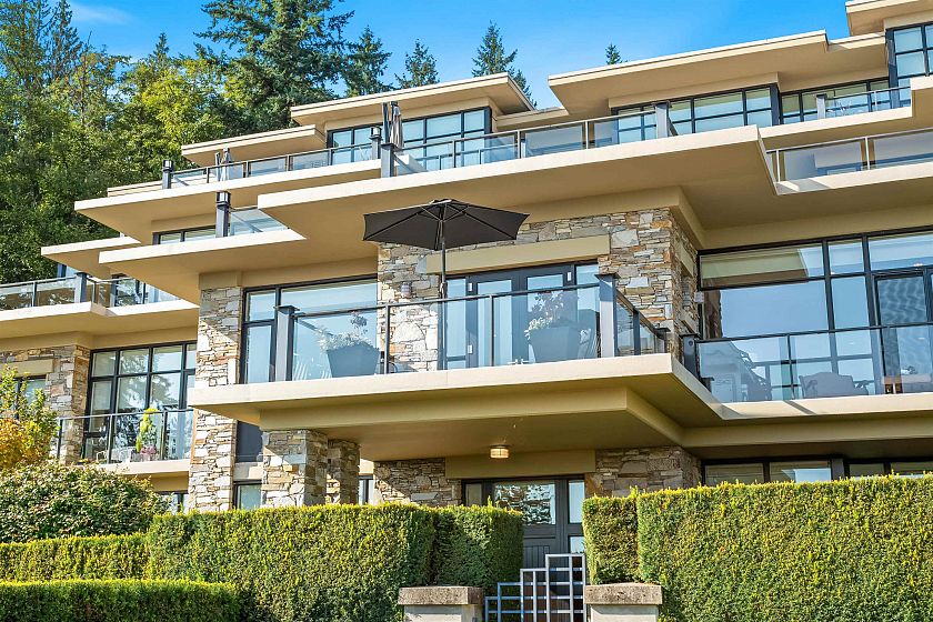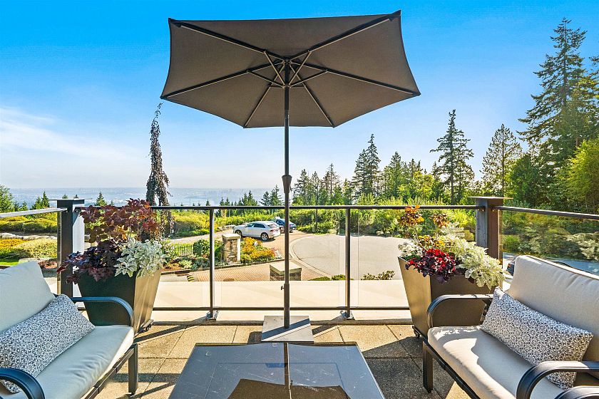 Perched at the top of Whitby Estates, this Quigg built luxury townhome combines elegance, tranquility, and sweeping views from Mt. Baker to English Bay. Designed to maximize views and light, this open plan home features 9’ ceilings, walls of glass, and timeless details such as Sub-Zero, Bosch & Thermador appliances, quartz counters, custom millwork, A/C, radiant heated bathroom floors—and even a heated dog wash! The private patios with lush gardens off both of the bedrooms and the expansive main-floor decks with ocean and city views provide all the outdoor space you need for gardening, entertaining, or just enjoying the sun and the outlook. Some other thoughtful features here include a gas fireplace, a private 2 car garage and ample storage. Steps to amazing parks and trails!