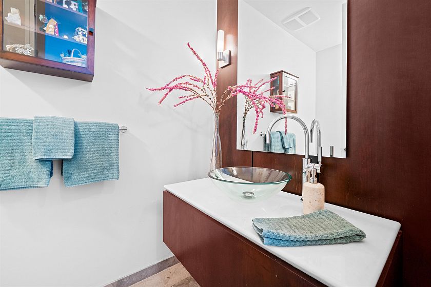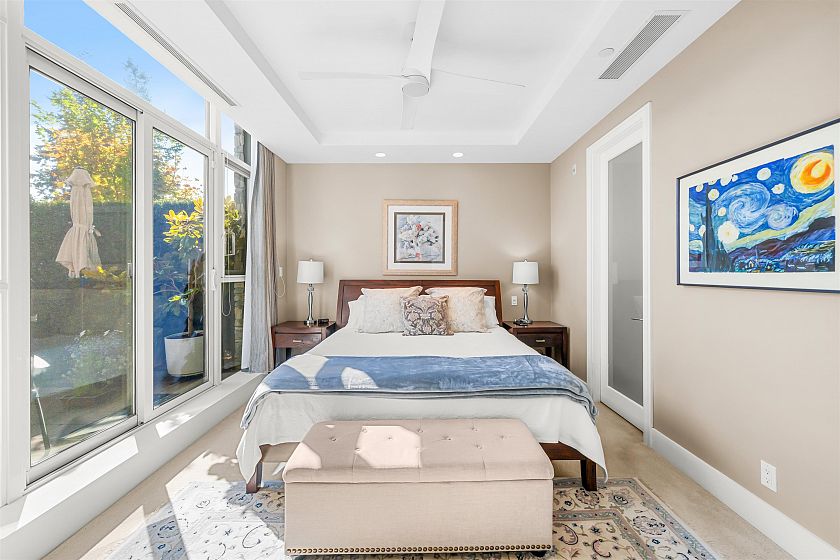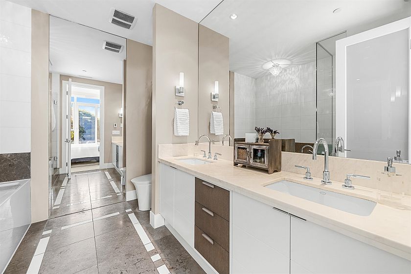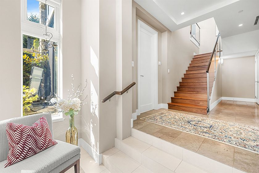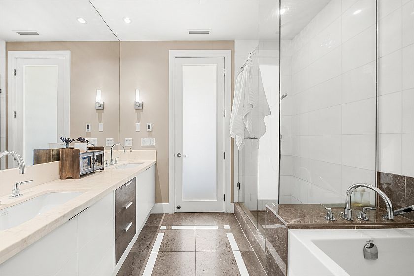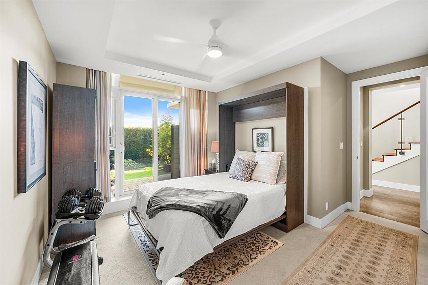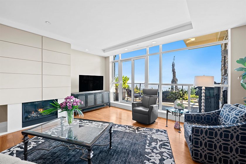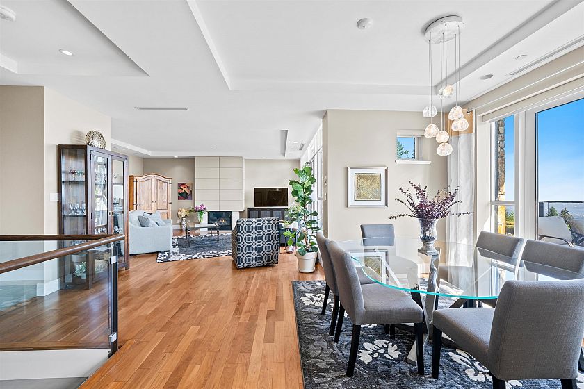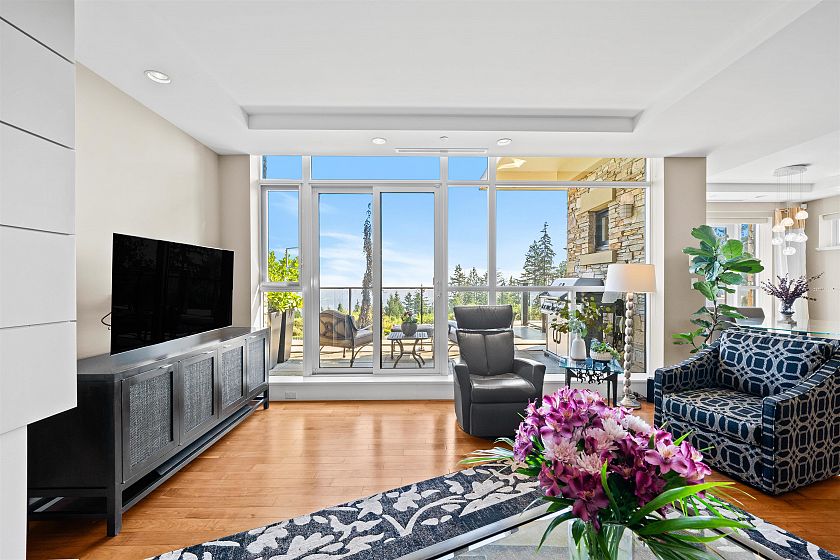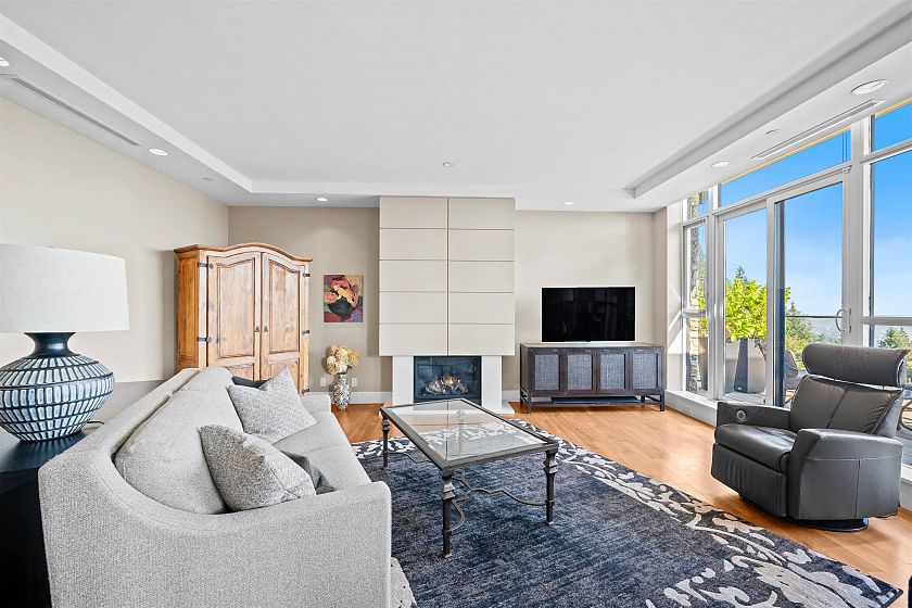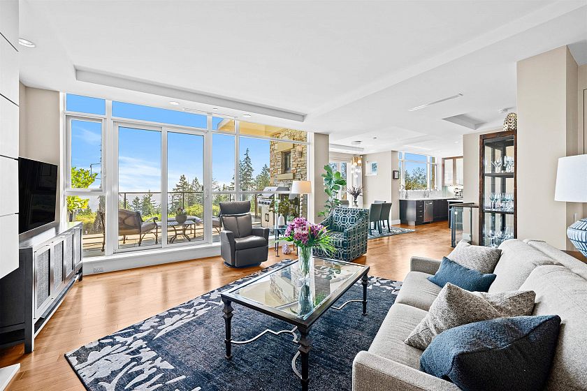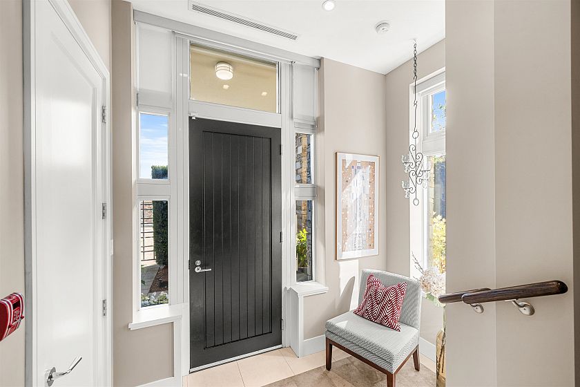 Perched at the top of Whitby Estates, this Quigg built luxury townhome combines elegance, tranquility, and sweeping views from Mt. Baker to English Bay. Designed to maximize views and light, this open plan home features 9’ ceilings, walls of glass, and timeless details such as Sub-Zero, Bosch & Thermador appliances, quartz counters, custom millwork, A/C, radiant heated bathroom floors—and even a heated dog wash! The private patios with lush gardens off both of the bedrooms and the expansive main-floor decks with ocean and city views provide all the outdoor space you need for gardening, entertaining, or just enjoying the sun and the outlook. Some other thoughtful features here include a gas fireplace, a private 2 car garage and ample storage. Steps to amazing parks and trails!