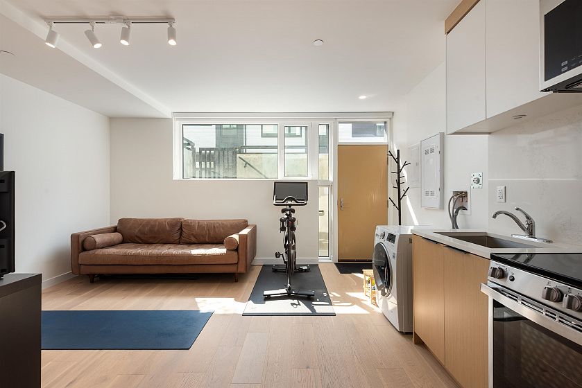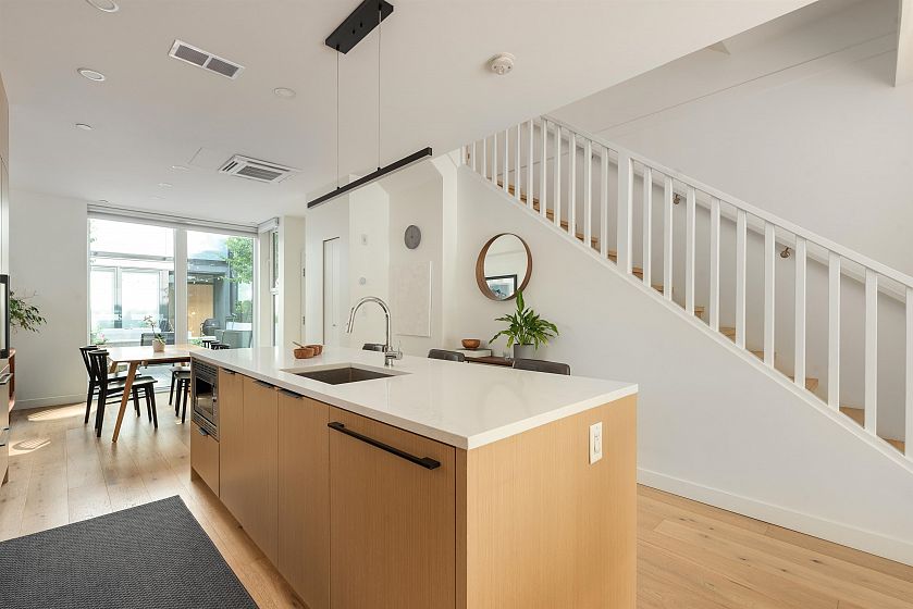 Family oriented 2,200 sq ft Moodyville TH w/ a studio suite & 3 outdoor areas - including a roof-top deck w/ city & ocean views! This spacious 3 bedrm, 5 bath home enjoys modern finishes w/ flexibility to suit your needs & convenience outside your door. The home features an open main level w/ HW floors, a chef’s kitchen w/ gas cook-top, integrated appliances, large island, & powder rm. The upper 2 levels enjoy 3 nice sized bedrms, 3 full baths w/ 2 ensuites (5-pc in primary), a flex/office space w/ access to south facing deck, & up to your 289 sq ft roof-top deck w/ southern views that enjoys water, elect., & gas bib for BBQing! You have flexibility below w/ the studio suite that could be converted to an office, gym, or rec rm. Add in 2 parking, storage rm, & steps to Moodyville - wow!