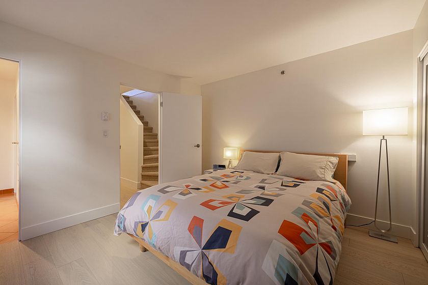 1 block away from Kits beach! Experience the best of Kitsilano living in this unique 3-level townhouse. The versatile layout offers a ground-level bedroom with en suite—perfect for guests or a private home office—a spacious primary bedroom ready for your personal touch, and a top-floor living area with beautiful ocean and mountain views. Tucked away on a quiet, tree-lined street, this home is part of a boutique building with only six units and is just around the corner from neighbourhood favourites like The Local, Nook, and Kitsilano Market