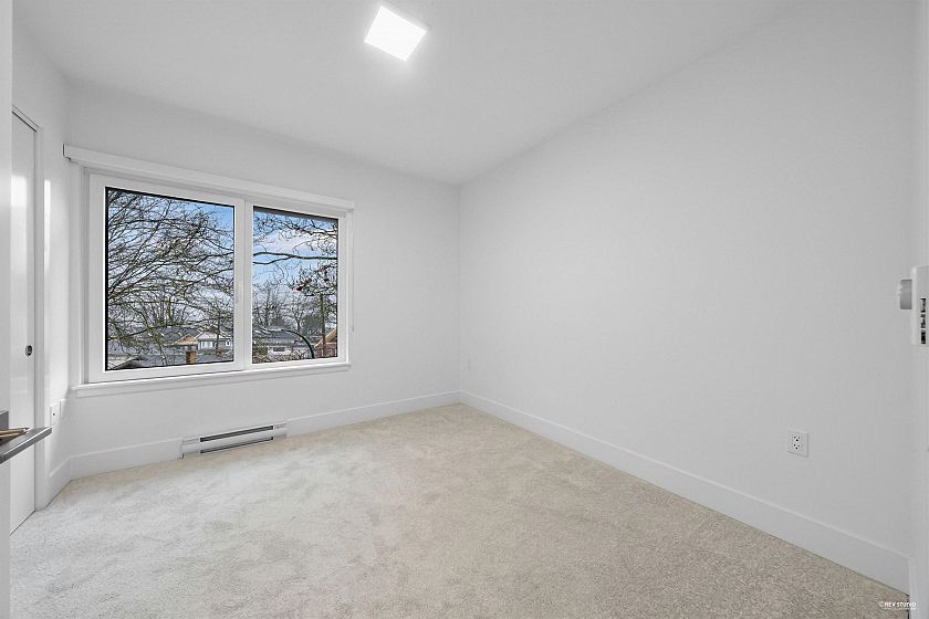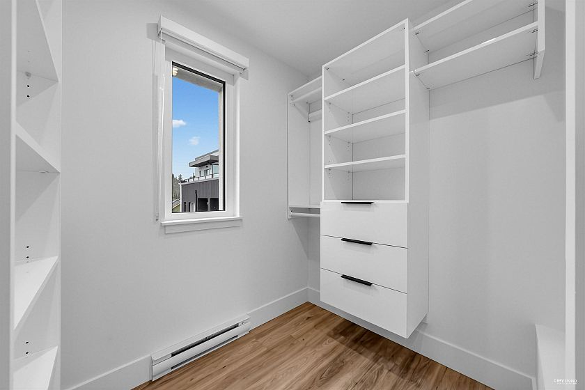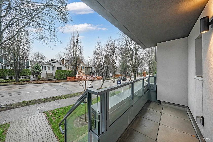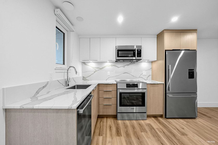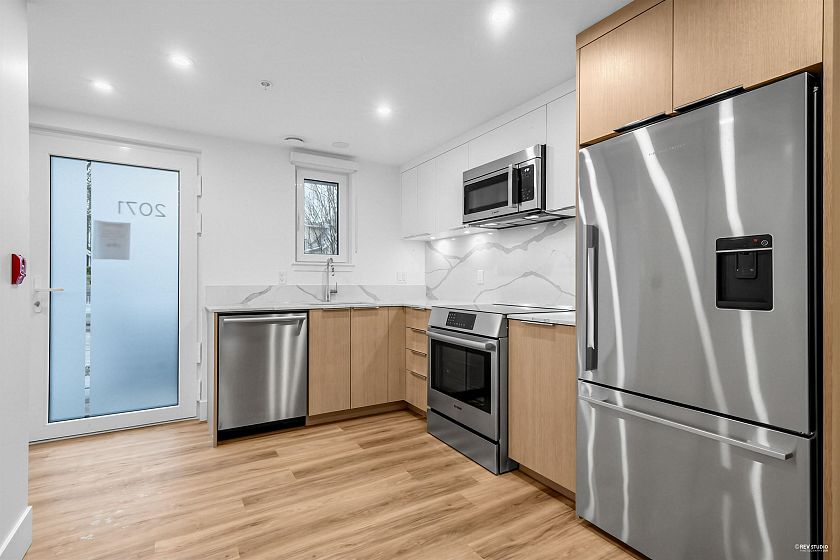 NEW PRICES! Dimex Group's 3-bedroom Passive House townhome at Lakewood combines modern design with sustainable living in Vancouver’s vibrant Commercial Drive neighborhood. Built for efficiency, it offers up to 90% savings on heating, triple-pane windows for peace and quiet, and a healthier indoor environment. The sleek kitchen includes a Fisher & Paykel fridge, Bosch appliance package, & quartz countertops. The top floor is a dedicated primary suite with a walk-in closet and private balcony—your own personal retreat. This end unit has AC roughed-in and upgrade-ready. 1 EV-ready parking stall and 1 storage locker included. Just steps to schools, parks, restaurants, transit, and the up-and-coming Nanaimo/Hastings area. Located on 1st Ave, but whisper-quiet inside.