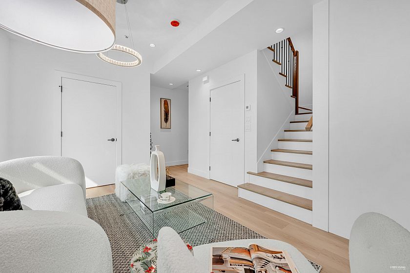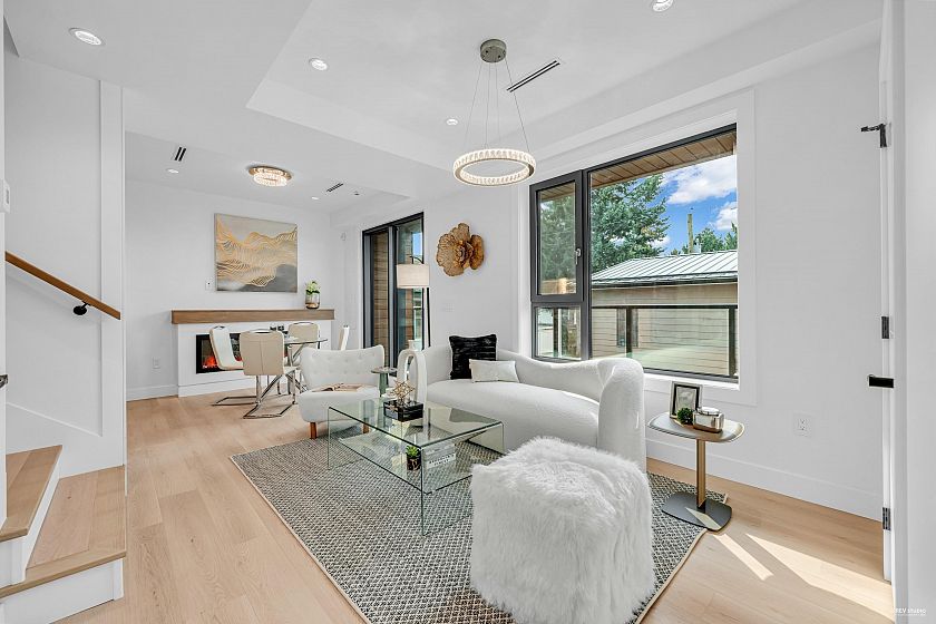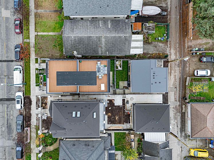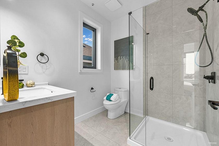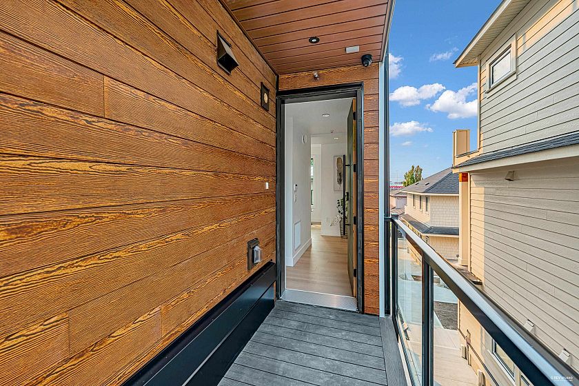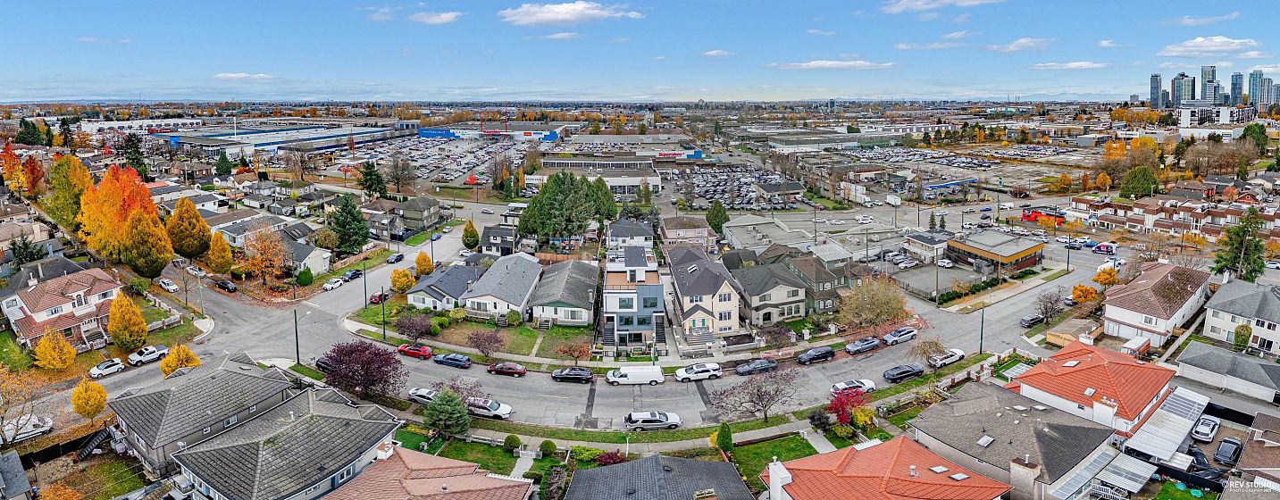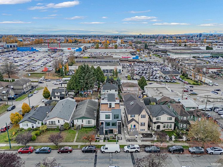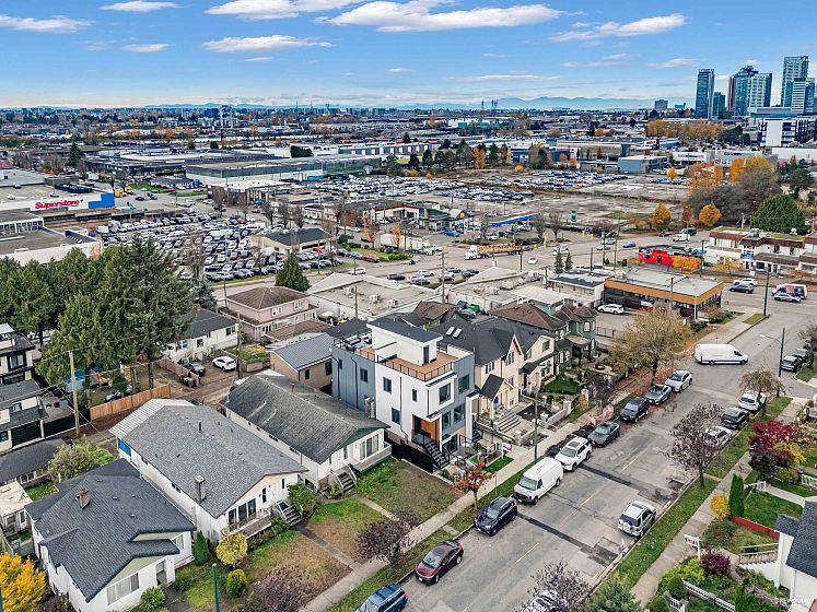 Modern 3-storey 3 BDRM/2.5 BATH unit in a premier 4-plex, combining style, comfort & convenience. Only 1 min walk to bus stop w/ direct access to Skytrain & Vancouver waterfront, 5 mins walk to restaurants & Canadian Superstore. Contemporary design features clean lines, open-concept layout, triple-glazed metal frame windows & energy-efficient systems. Enjoy private yard, alarm, sprinkler & security cameras with back lane access open parking with EV Charging. Inside: gas stove, heat pump (heating/cooling) & 450sqft rooftop patio w/ unobstructed city & mountain views. No Strata Fee!