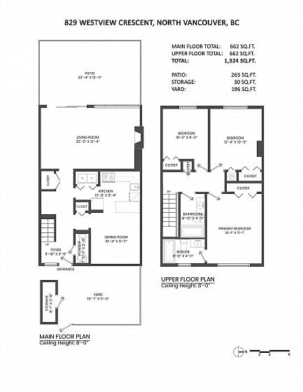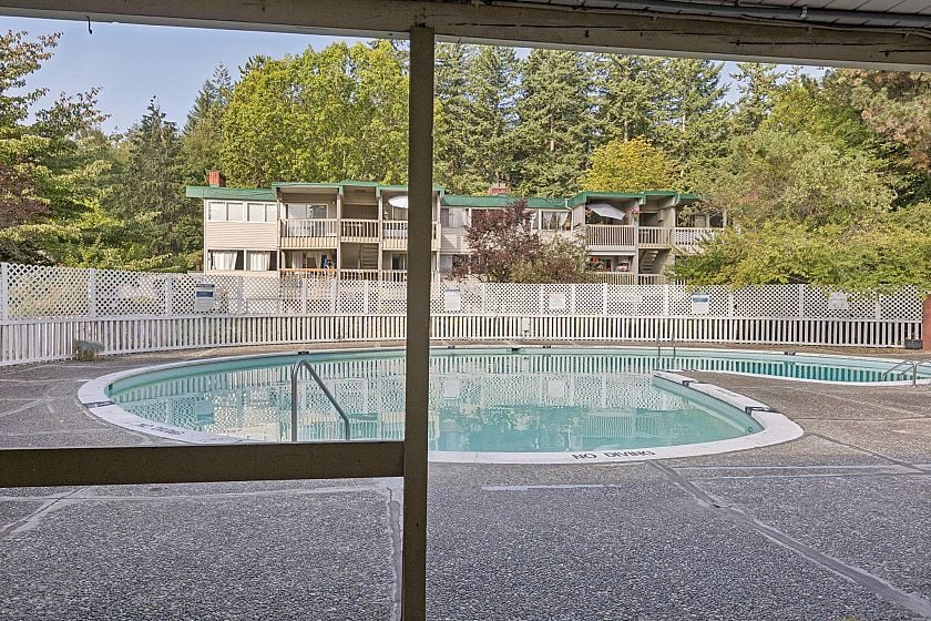 Backing onto the creek, this quiet 3 bedroom, 2.5 bathroom, 2 level family townhouse offers exceptional value. Enjoy two private patios, in-suite laundry, one covered parking space, and access to an outdoor pool. Conveniently located within walking distance to Westview Shopping Centre, Delbrook Rec Centre, and Edgemont Village. The monthly fee includes heat, hot water, and property tax. Pets and rentals are allowed. In original condition, ready for your renovation ideas. Excellent opportunity with future redevelopment potential.