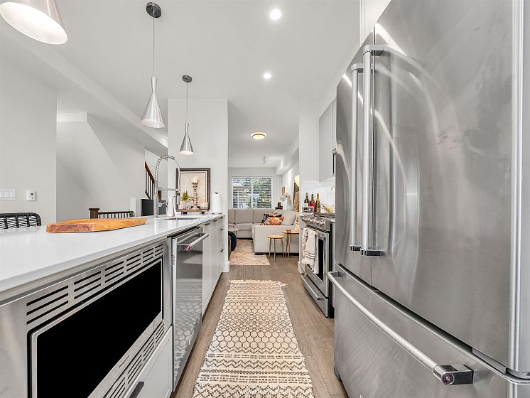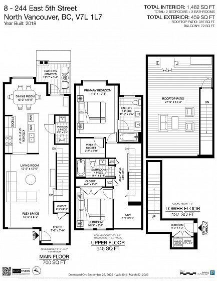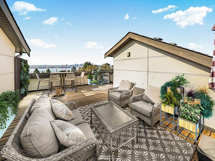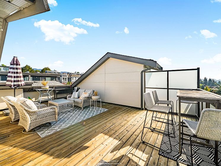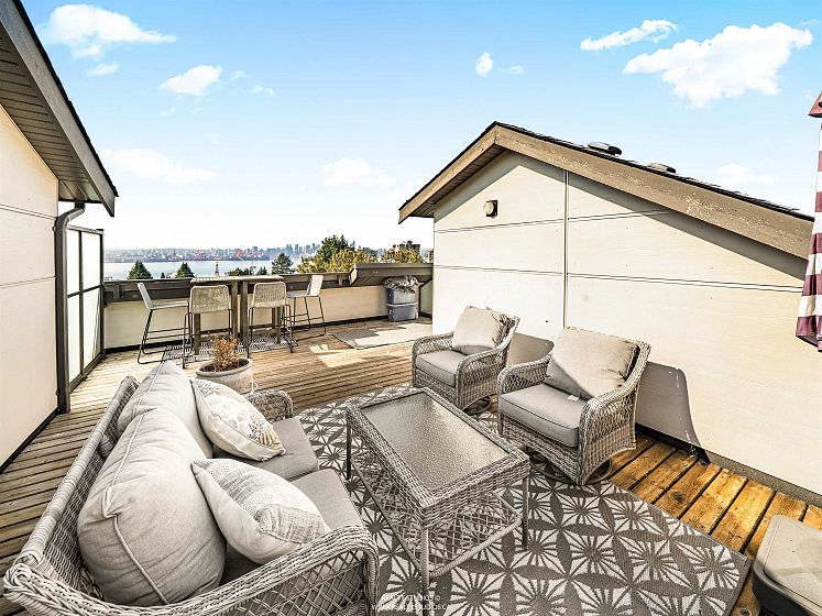 Welcome to this stunning 3-level townhome in the heart of Lower Lonsdale, featuring an incredible 387sqft rooftop patio with sweeping harbour and city views. Offering 1,482sqft of indoor living, this home boasts 2 bedrooms + den and 3 bathrooms. The main level showcases a bright living, dining, and kitchen area with flex space and covered balcony. Upstairs, enjoy downtown views from your primary bedroom with walk-in closet and ensuite, a 2nd bedroom, full bathroom, and den space perfect for an office or reading nook. The lower level includes a mudroom with laundry and direct access to the parkade and storage. Private courtyard entrance and an unbeatable location - steps to the Shipyards, Lonsdale Quay, Spirit Trail, and all the best Lower Lonsdale restaurants and amenities.