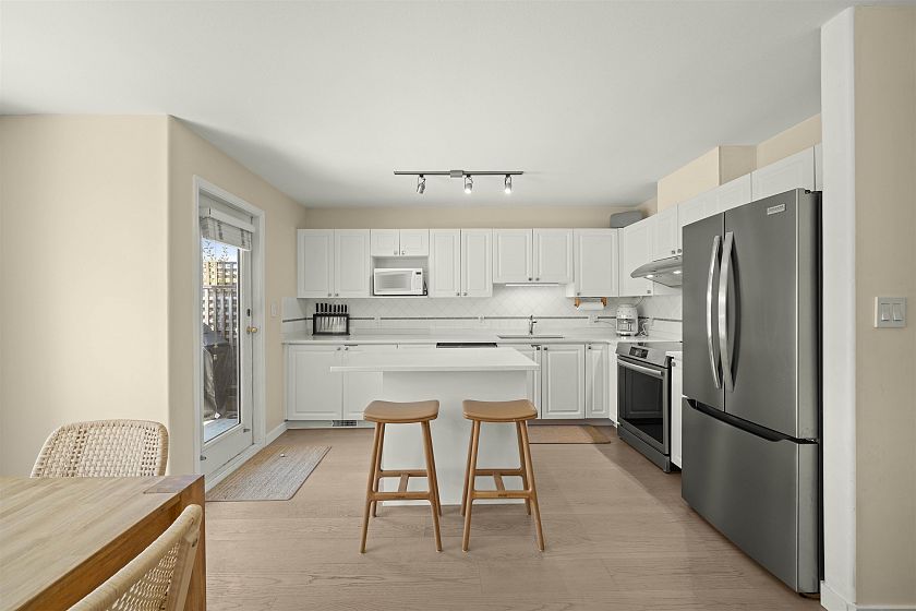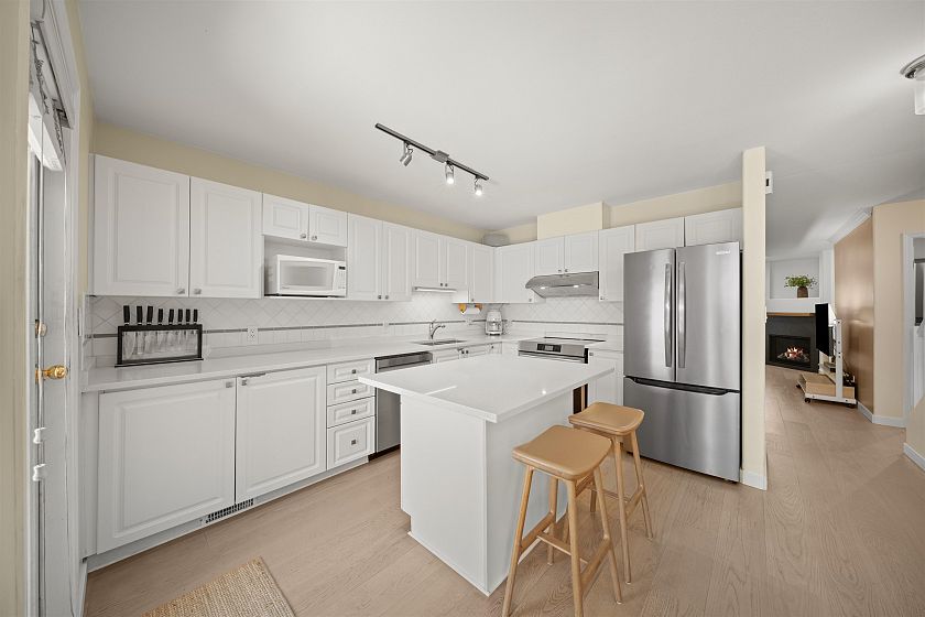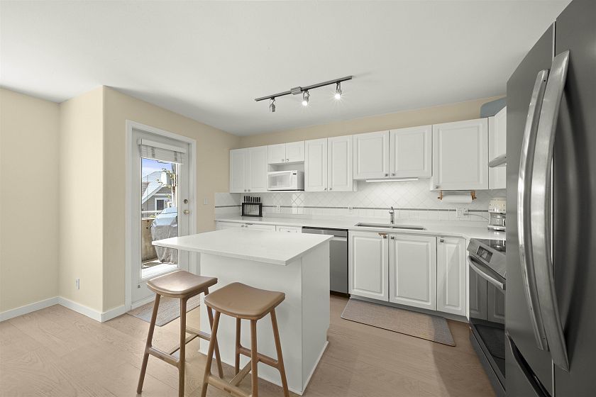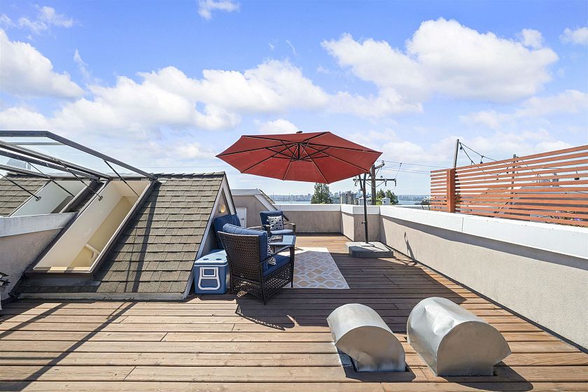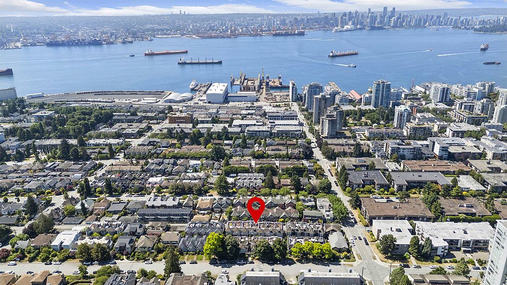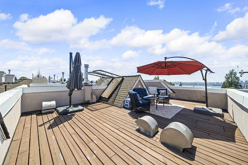 Stylish, spacious & renovated townhouse offering comfort and convenience in the heart of Lower Lonsdale! Enjoy open-concept living with a gas fireplace and a sunny south-facing deck—perfect for morning coffee or BBQs. The kitchen flows into a cozy family room, ideal for relaxing or playtime. Upstairs features a serene primary suite with ensuite, walk-in closet & private balcony, plus two bedrooms each with deck access. The showstopper rooftop patio delivers breathtaking panoramic views of Downtown Vancouver & the Harbour. Steps to Shipyards, Lonsdale Quay, SeaBus, cafes, breweries & parks. SCHOOLS: Ridgeway (K-7) & Sutherland (8-12).