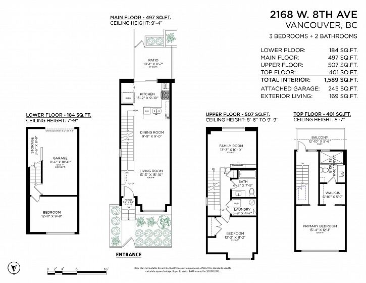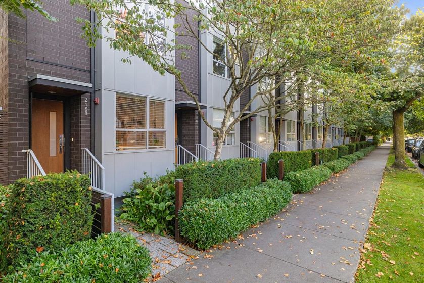 Welcome to CANVAS where contemporary design meets the vibrant energy of Kitsilano. This 1,589 sqft 3 bed + den corner unit townhouse blends modern design with functional living. The open-concept main floor features overheight ceilings, hardwood floors, floating stairs, a sleek kitchen with breakfast bar, and a sunny south-facing patio with natural light flowing through windows on 3 sides. Upstairs offers a bedroom + open den (which can be converted to a 4th bedroom), cozy fireplace, full bath, and laundry. The top floor is a private primary suite with walk in closet, spa-like ensuite, and sundeck. The lower level includes a flex space with custom California closet & desk—perfect for a guest room, office, or gym. Complete with an attached garage + 2nd parking. Open House: Sat, Oct 25 2-4pm