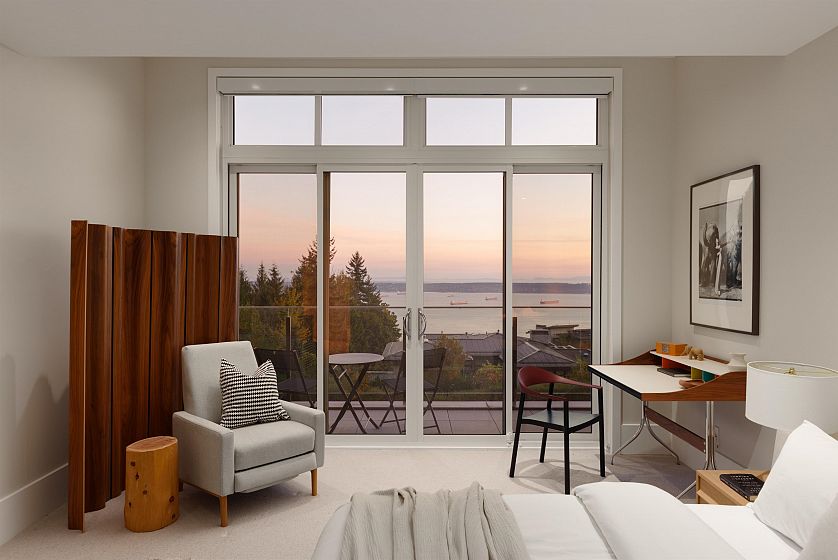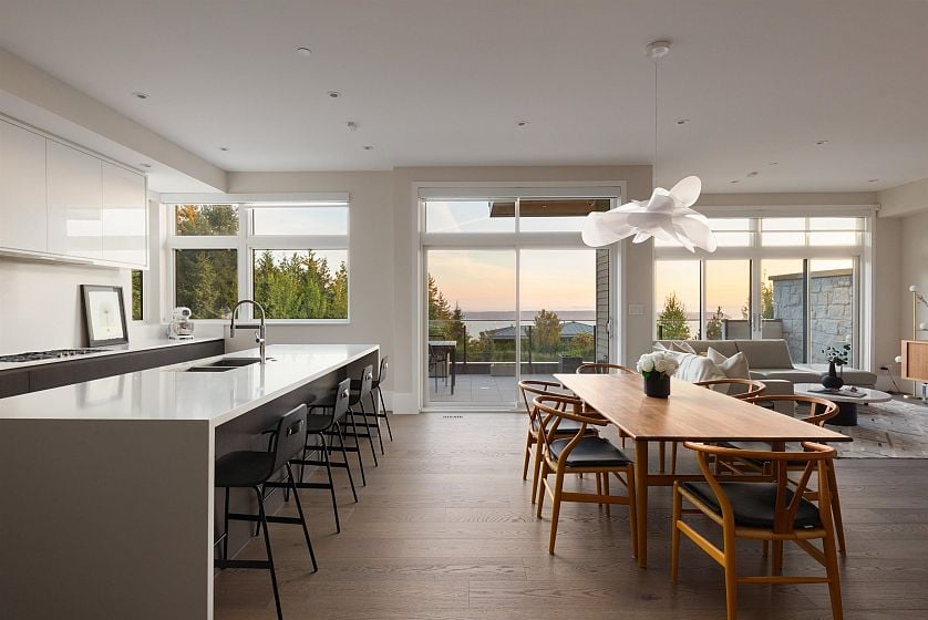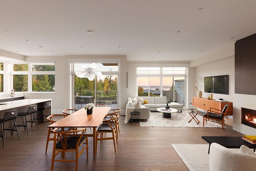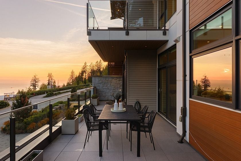 Truly breathtaking, unobstructed WATER VIEWS! Perched in the mountains, this contemporary 3-level residence blends high-end finishes w/ warm, inviting design. spanning over 3,200 sq ft. 4 spacious bedrooms, 4 bathrooms, +private home office, XL laundry room & the ultimate convenience of an in-home elevator. Complete with A/C, radiant heat, a cozy gas fireplace & an electronic blind system throughout. The kitchen boasts a full size Miele & Sub Zero, fully integrated appliance package. Expansive windows frame epic views of Downtown Vancouver & the Burrard Inlet from each level & each bedroom! A large, South facing terrace off the main level invites seamless indoor-outdoor living. 2 car private garage & storage room. Conveniently located minutes to Cypress Ski Resort & Mulgrave School.