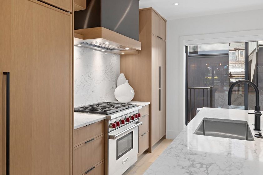 "The Heights" by Crossmark Projects offers this 3-bed+Den, 3.5-bath residence spanning 3 thoughtfully designed levels. The main floor boasts a spacious living room, a dining area perfect for family gatherings, and a gourmet kitchen with a 4'x10' island, custom oak cabinetry, integrated Sub-Zero fridge, Wolf 6-burner stove, and a large pantry. The upper level is a family retreat with 3 beds+ a primary suite with hotel-inspired ensuite. The versatile lower level includes a cozy theater/rec room, bedroom/office, and flexible gym space and exterior entry. Enjoy large front and back yards, parking, ample storage, and unbeatable walkability to all of Kerrisdale's amenities. Open House Dec 6th/7th 2-4pm